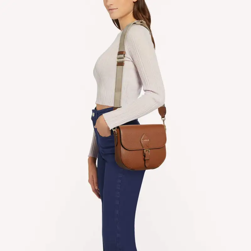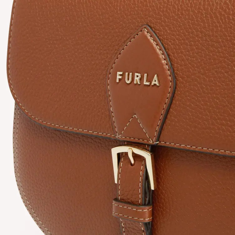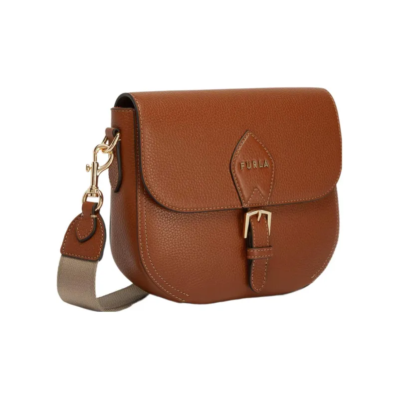 Furla Urania Рельефная Телячья Кожа Седло Сумка Сумка через плечо Маленькая Женская Коричневая