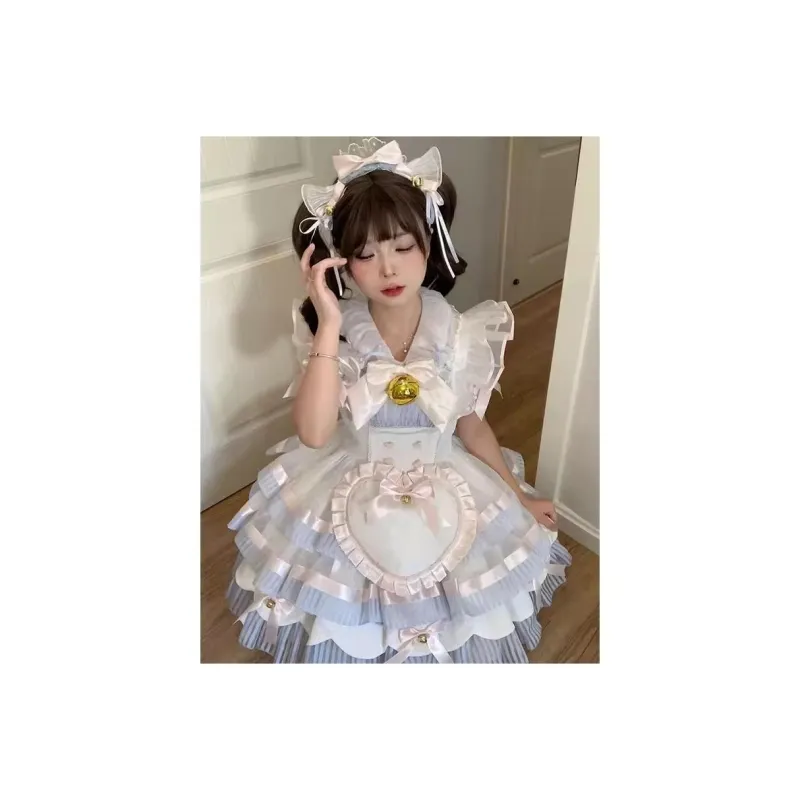 FUSHENG Набор из 5 предметов JSK+Внутренний слой+Фартук+Декор для шеи+Бант на платье Женское платье в стиле Лолита