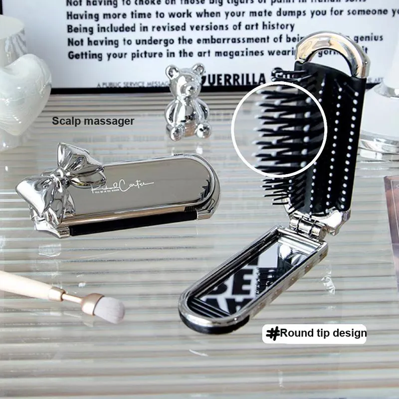 Складной гребень + серебряный бант [с съемным зеркальцем]