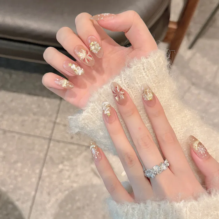 Fuyao Праздника Fireworks Искусственные Ногти Средний Трапеция Миндаль Короткий ЛАДДЕР Телесный Градиентный Кошачий глаз
