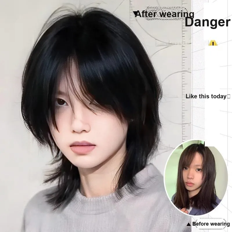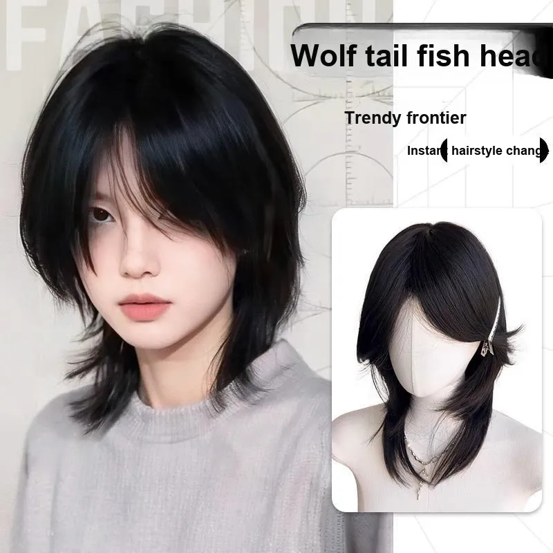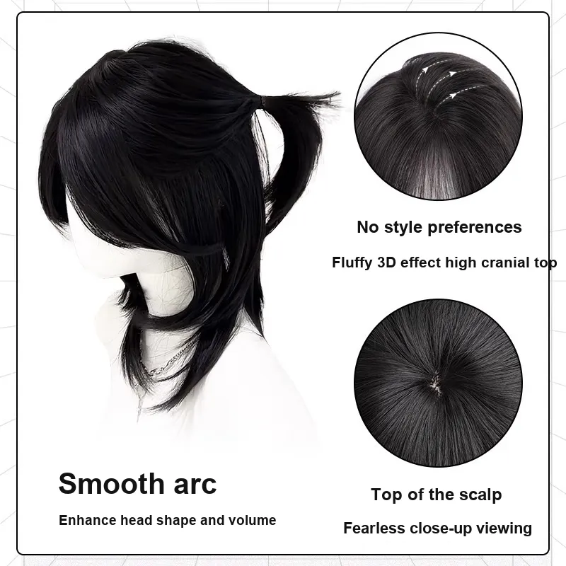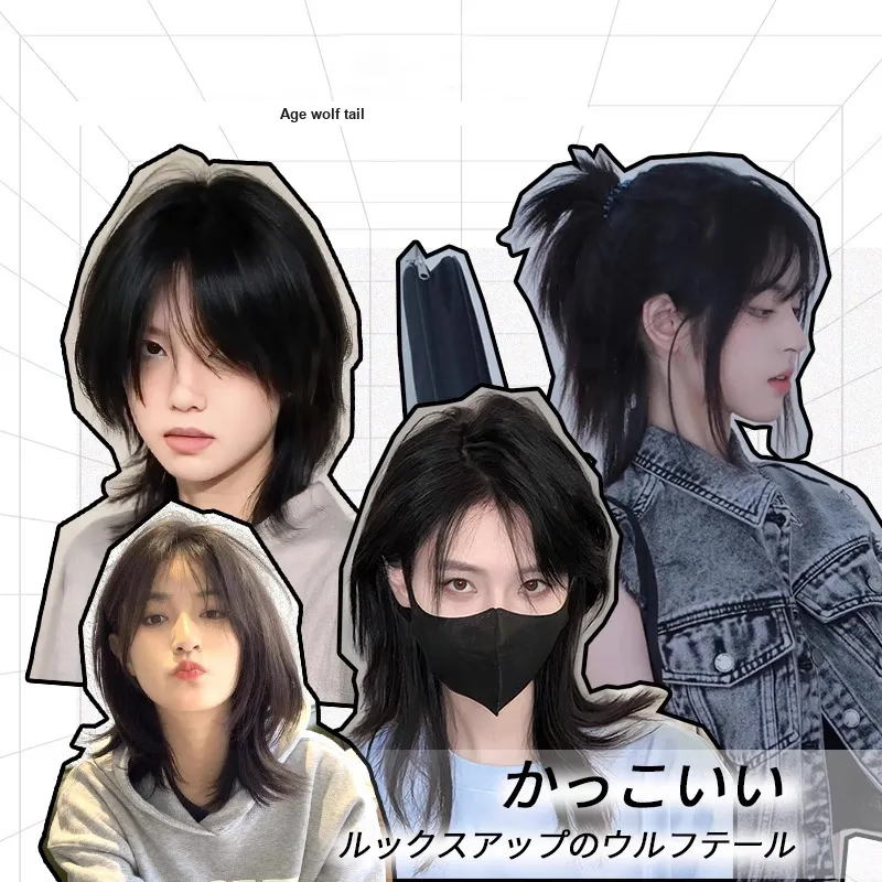 FYOSEE CENTER Часть Semi Tied Faux Wolf Tail Wig Высокая температура Пряжа Короткие Прямые волосы