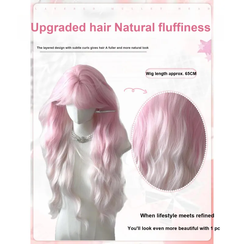 FYOSEE Лолита Розовый Градиентный Водная рябь Большая волна Женская Перука Высокая температура Пряжа