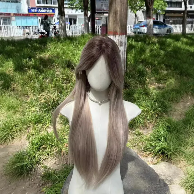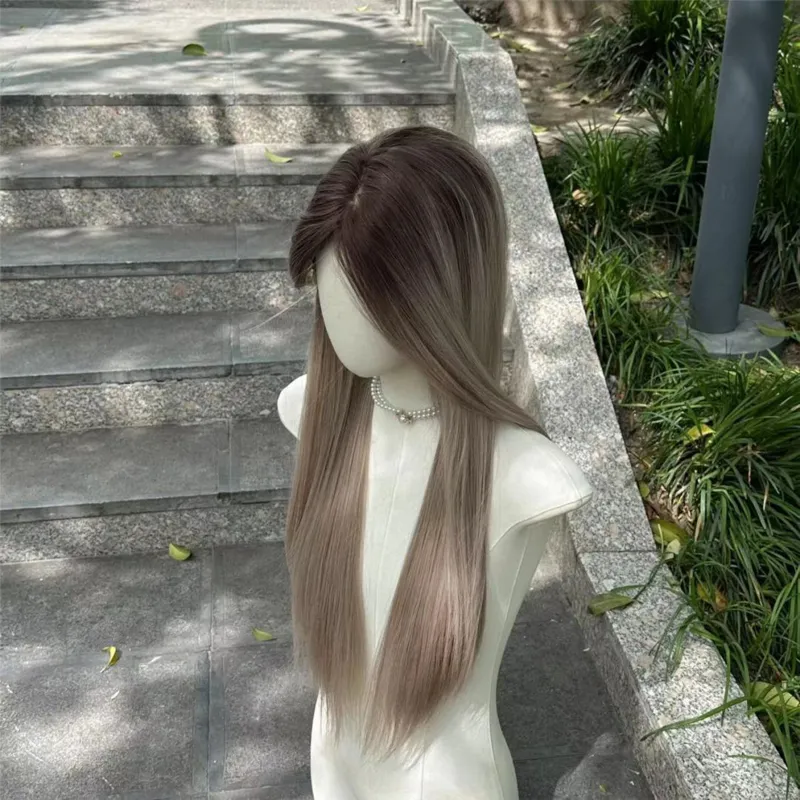 FYOSEE Маленький кружевной полный парик с окрашенной азиатской градиентной длинной прямой волосами