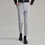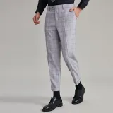 G· Mons Light Gray Plaid Men's Casual Pants G· Mons Светло-серые клетчатые мужские повседневные брюки