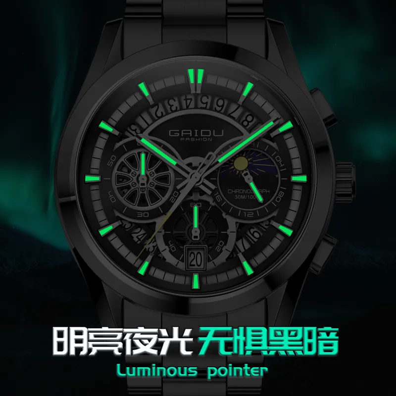 GAIDU Darth Vader Collection Кварцевый механизм Стальной ремешок Часы Мужские Черный циферблат