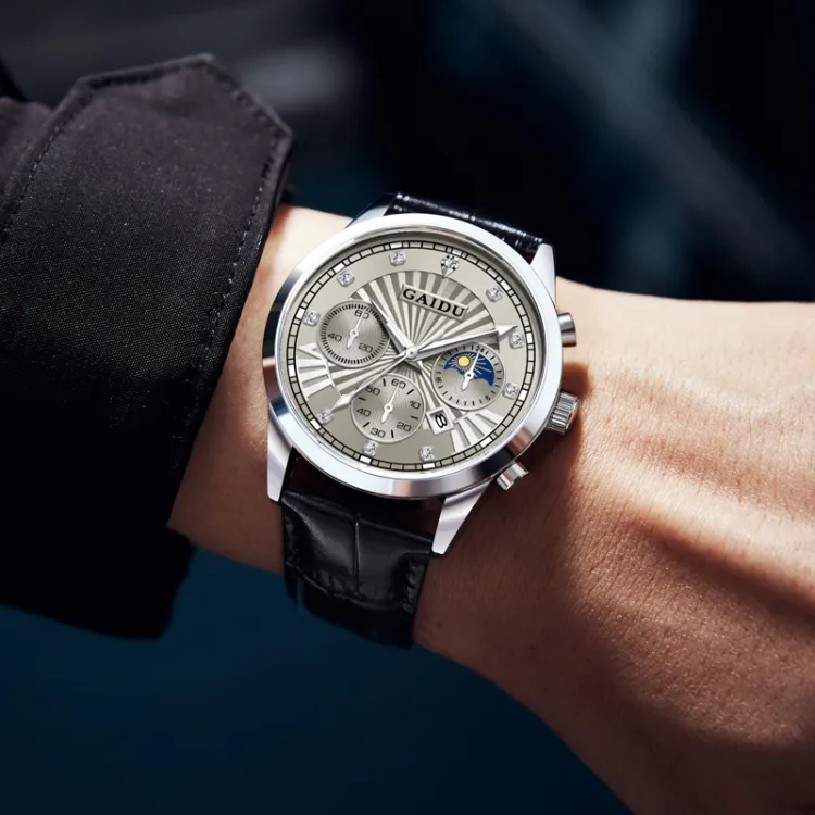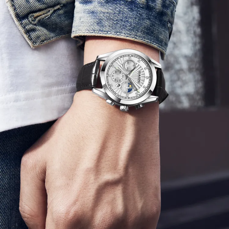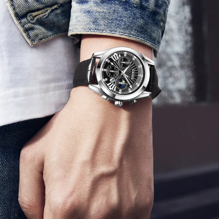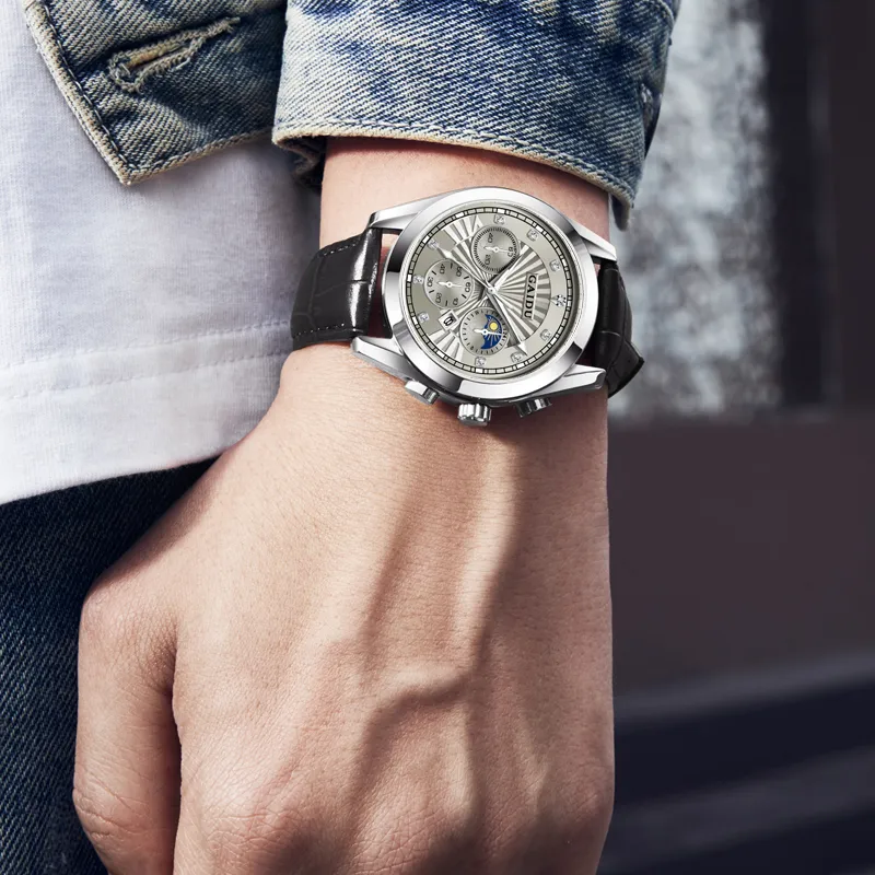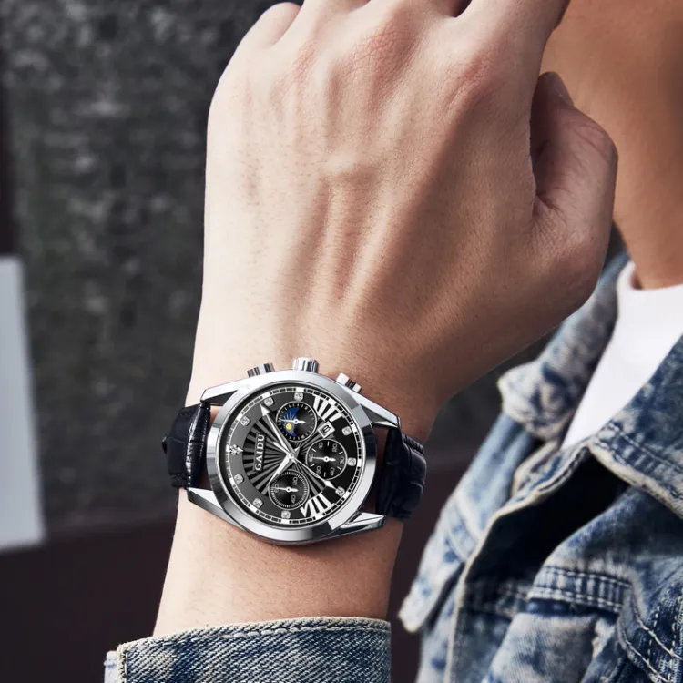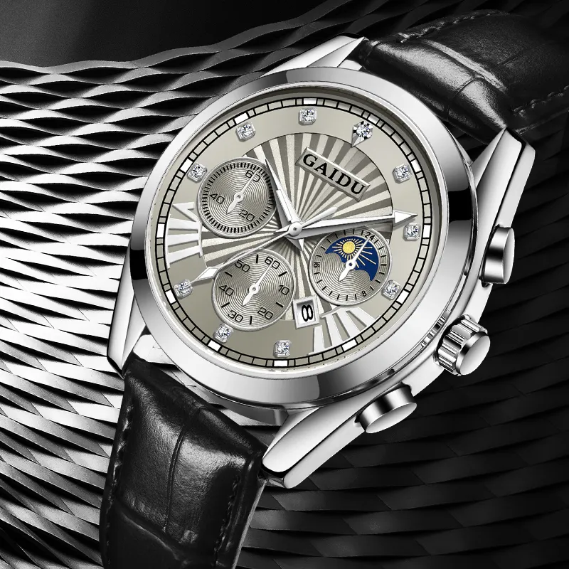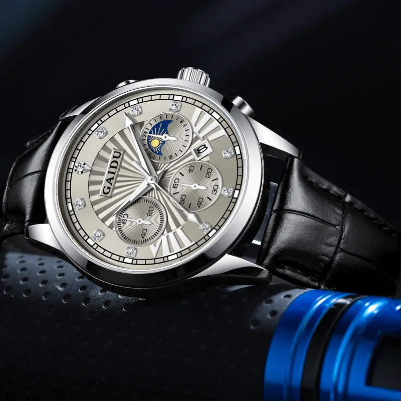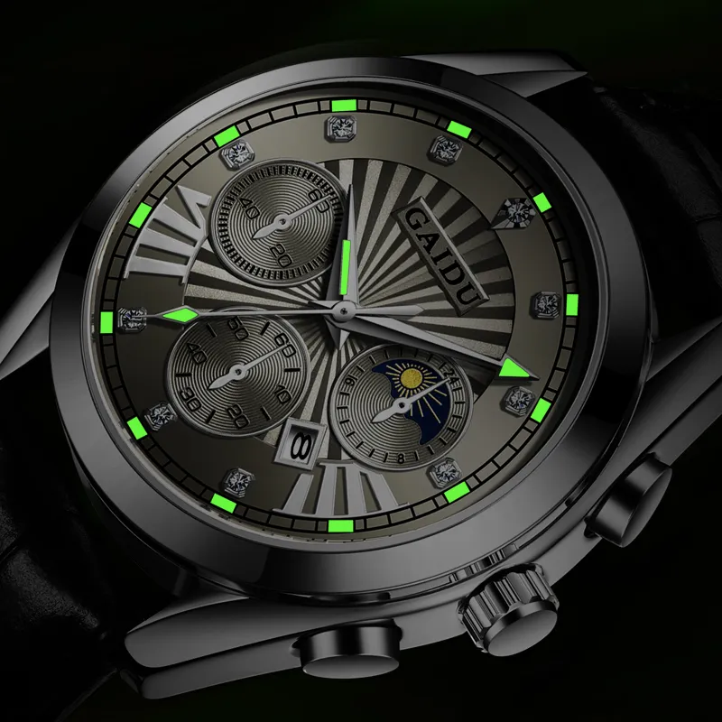 GAIDU Услуга создания поздравительных открыток коллекция Black Warrior Кварцевый механизм Естественная кожа Ремешок Часы