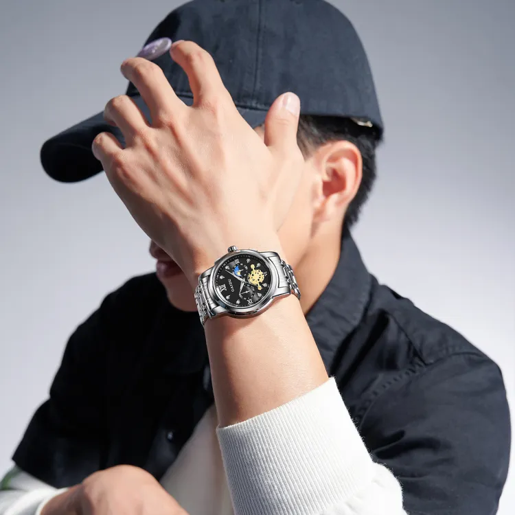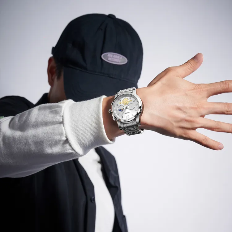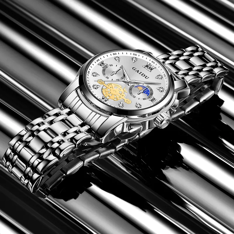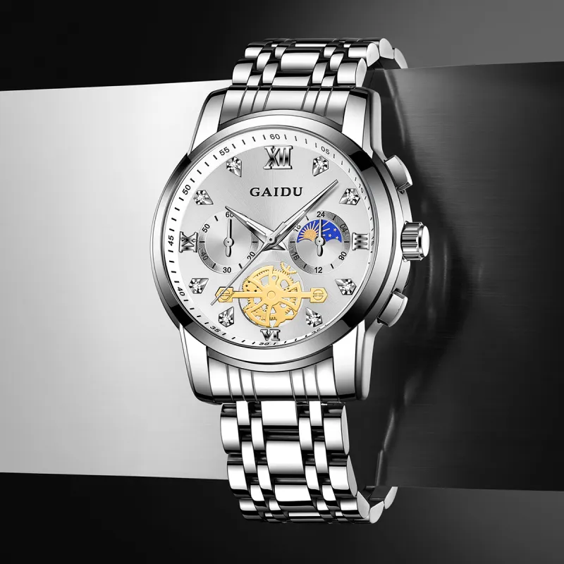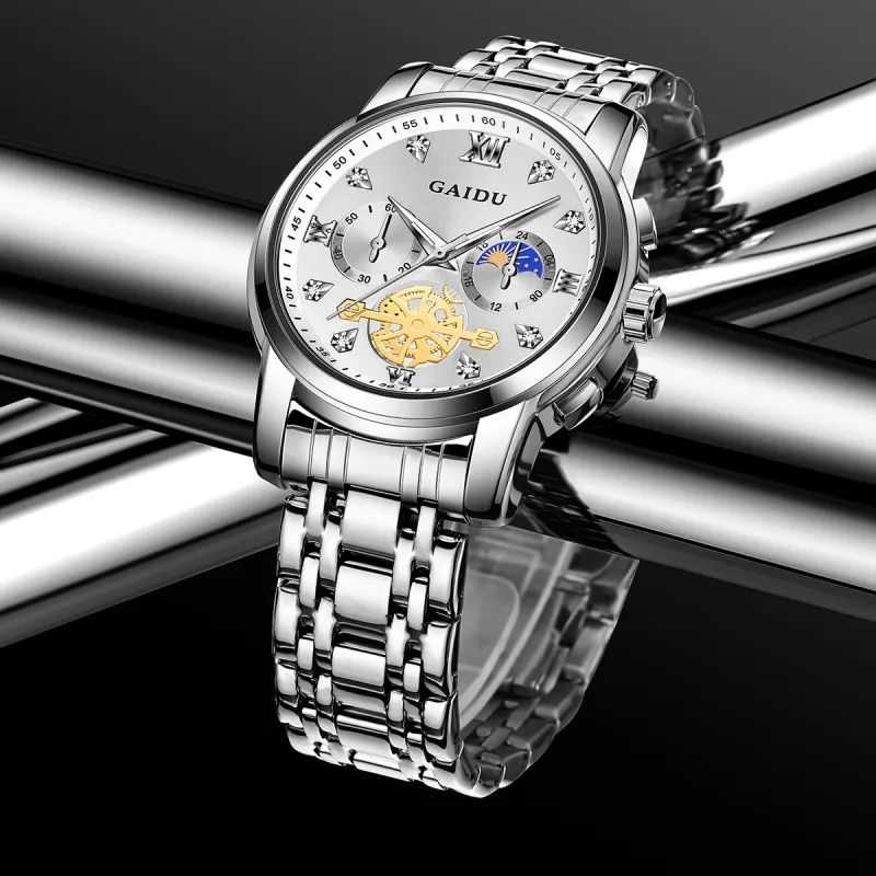 GAIDU Услуга написания поздравительных открыток Кварцевый механизм Стальной ремешок Часы Унисекс Черный циферблат