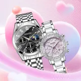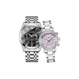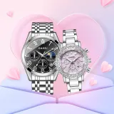 GAIDU Versatile Couple's Watch Pair Кварцевый механизм Металлический ремешок Часы Унисекс Черный циферблат