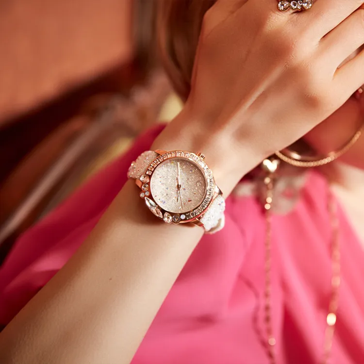 GALTISCOPIO Star Diamond Женские часы Кварцевый механизм Естественная кожа Ремешок Золото Циферблат