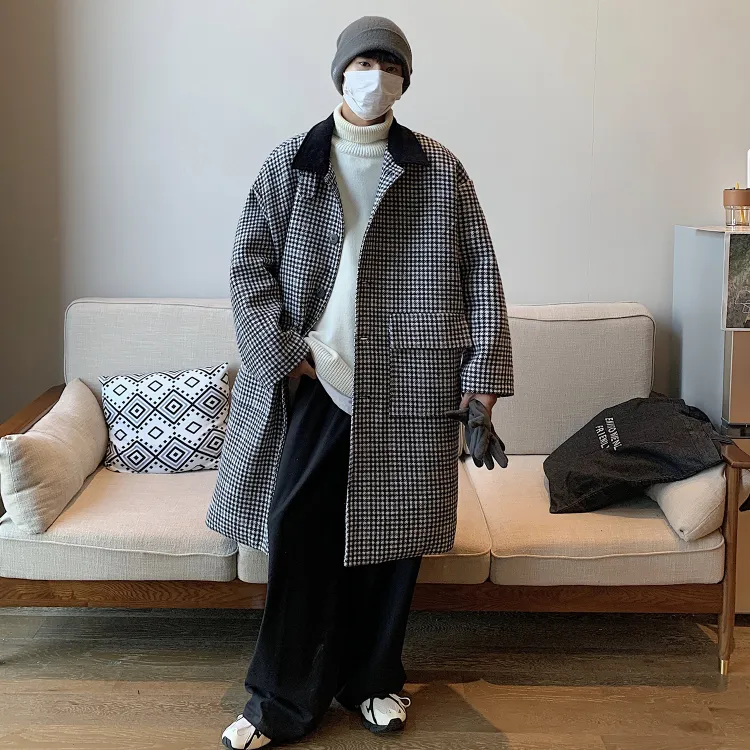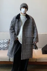 GANGZAI Клетчатое Унисекс Пальто