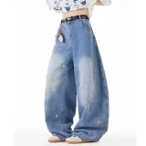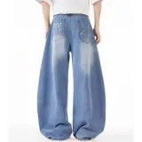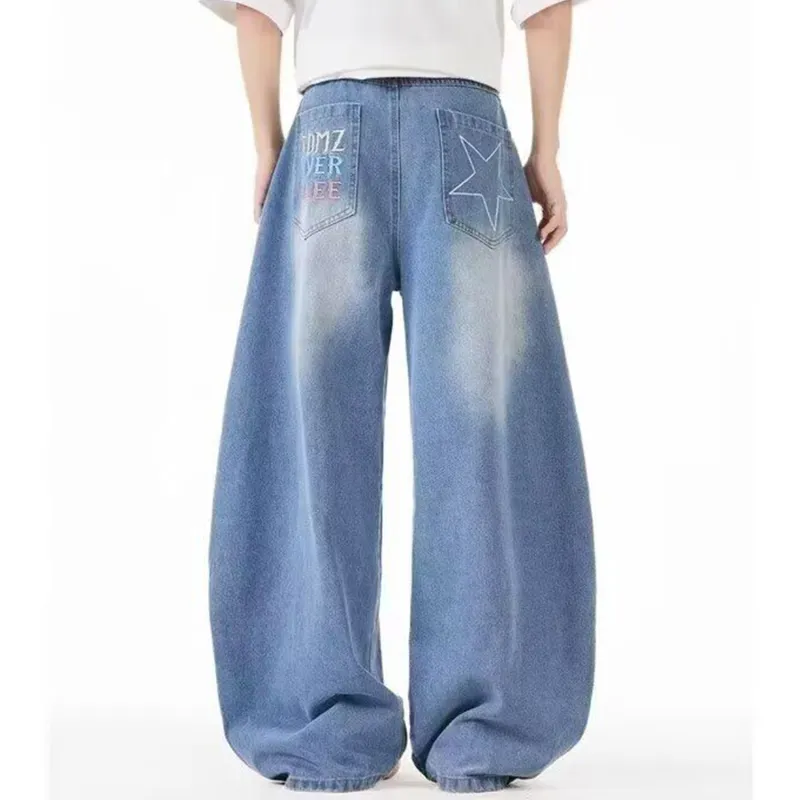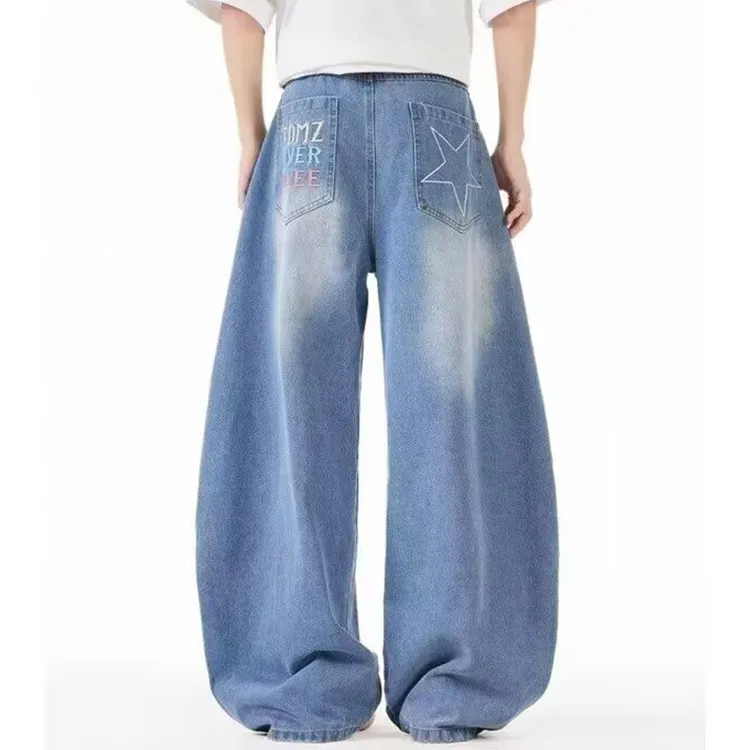 GANGZAI Blue Unisex Jeans GANGZAI Синий Унисекс Джинсы
