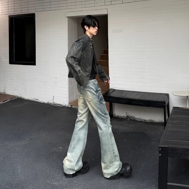 GANGZAI Винтажные синие унисекс джинсы