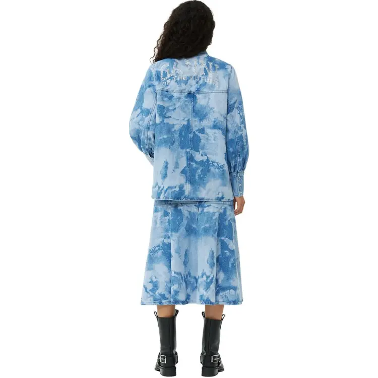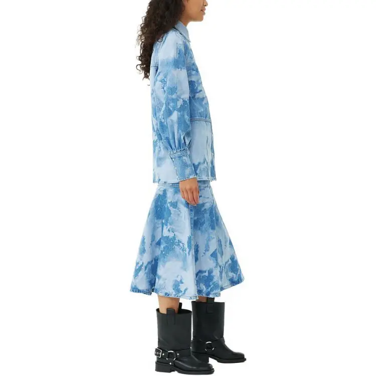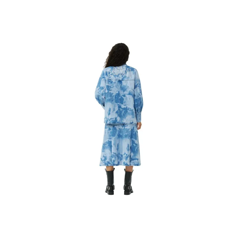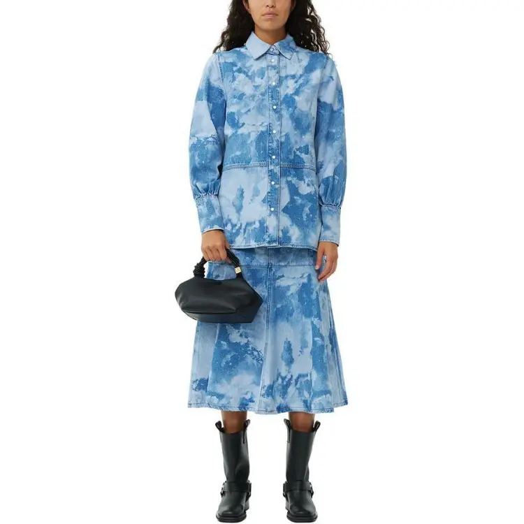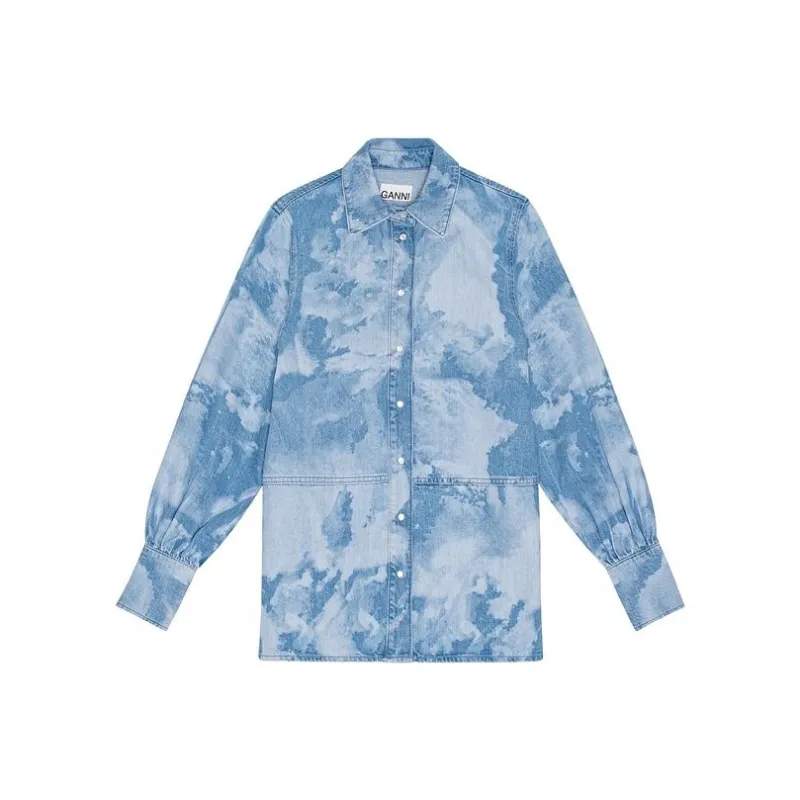 GANNI SS24 Рубашка Женская Светло-Синяя Серый