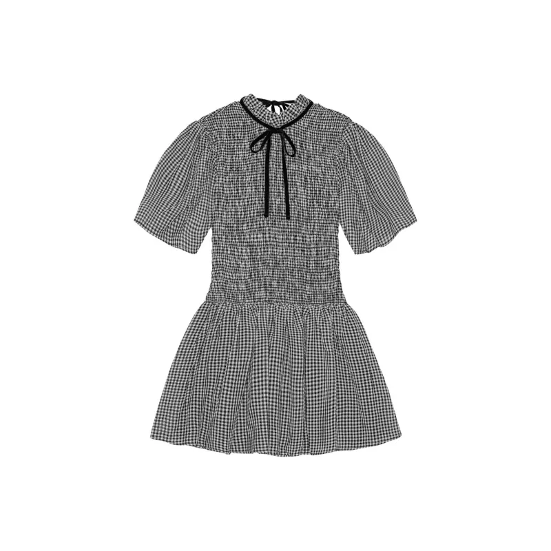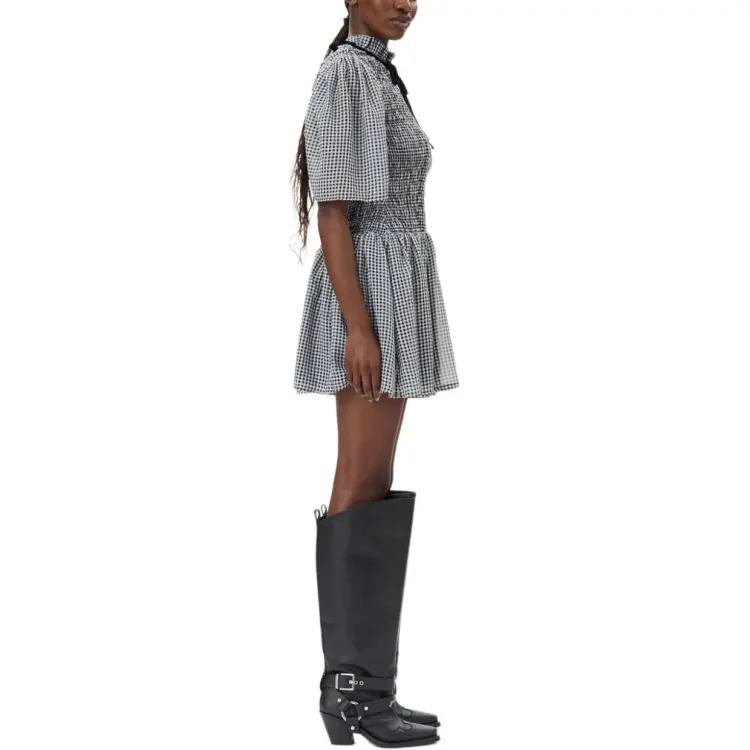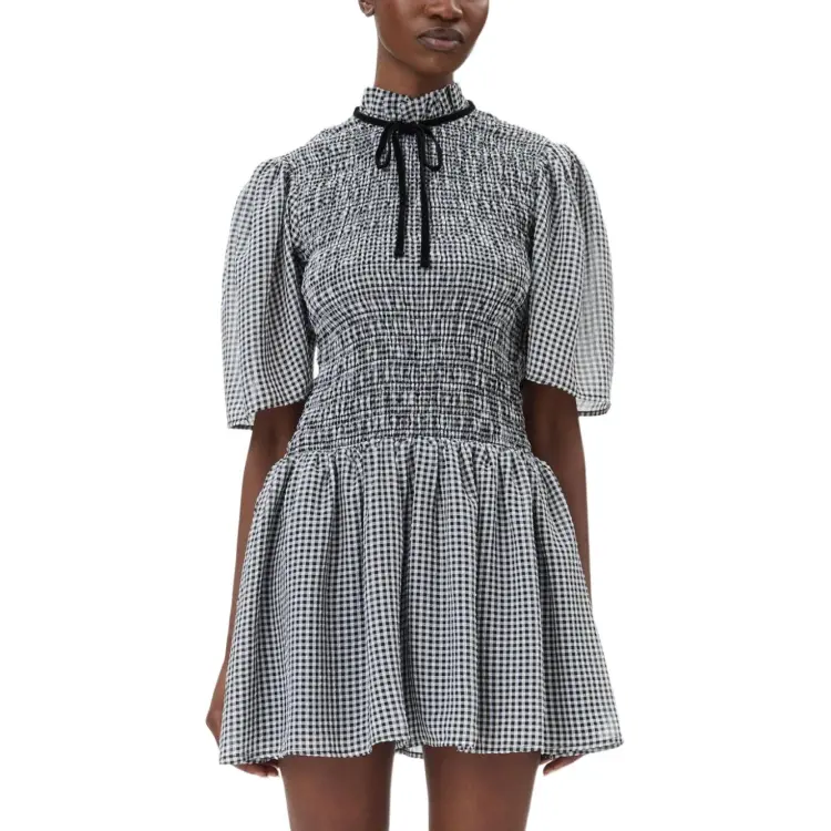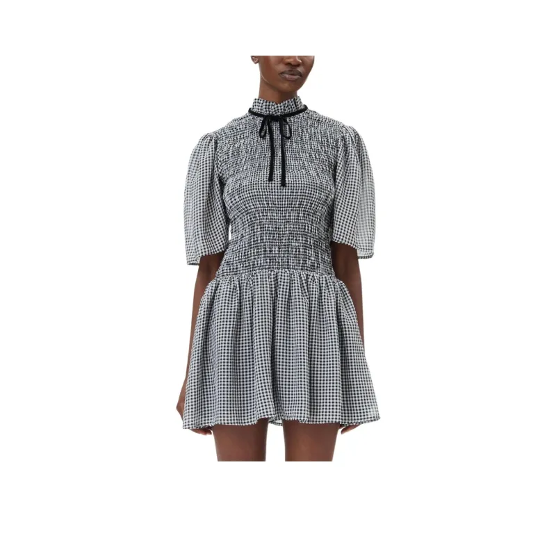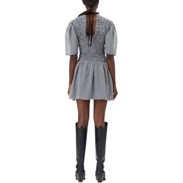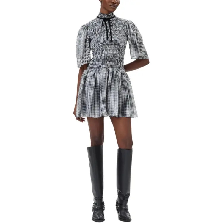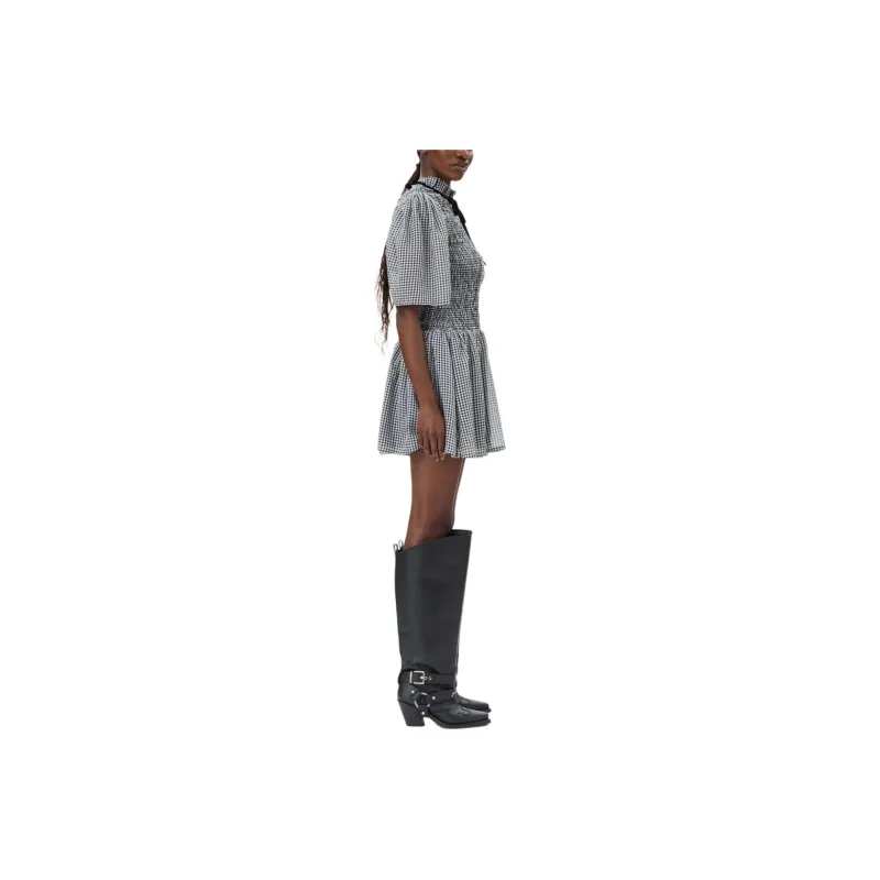 GANNI Короткое платье с короткими рукавами женское черное