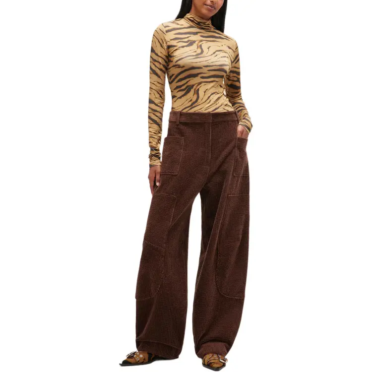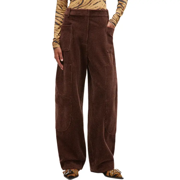 GANNI Цикорий Кофейный Коричневый Женские Повседневные Штаны