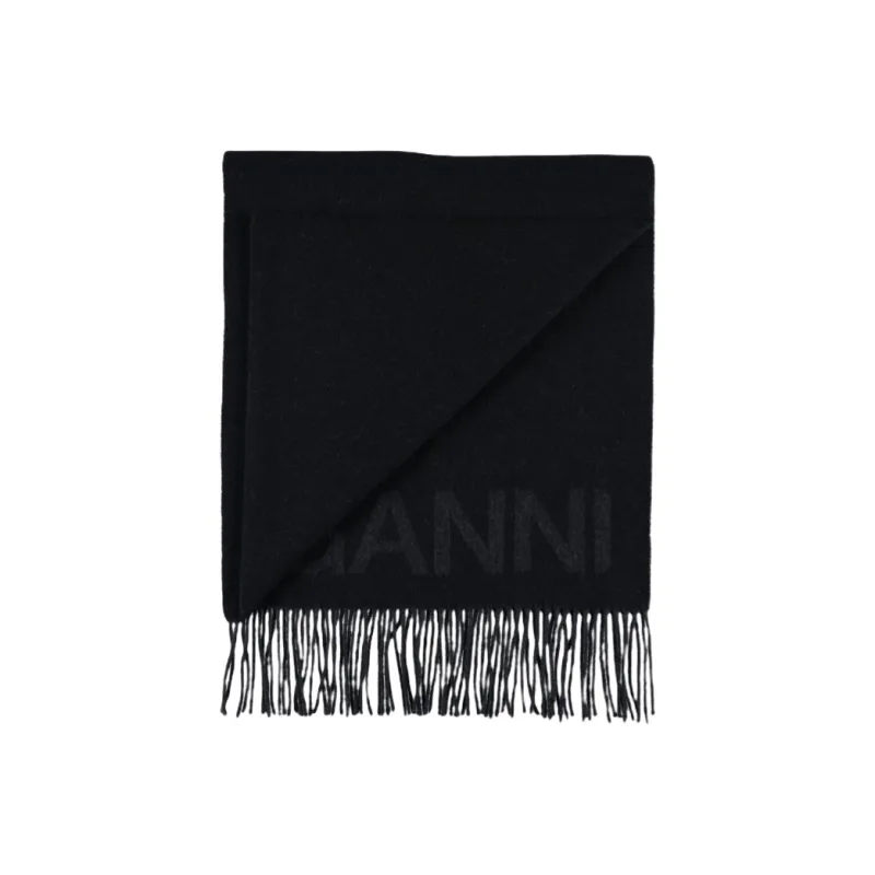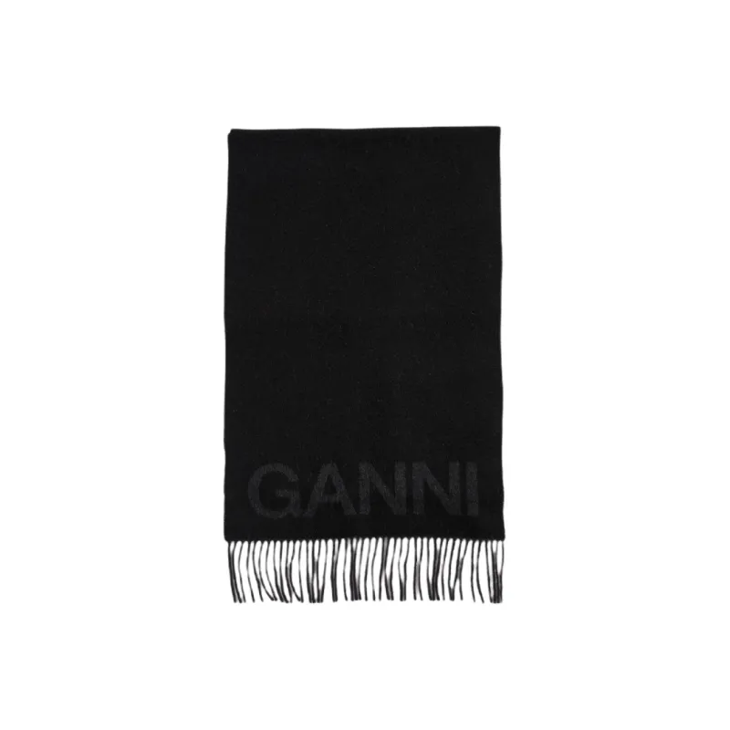 GANNI Шерпа из шерсти шарфы черный унисекс