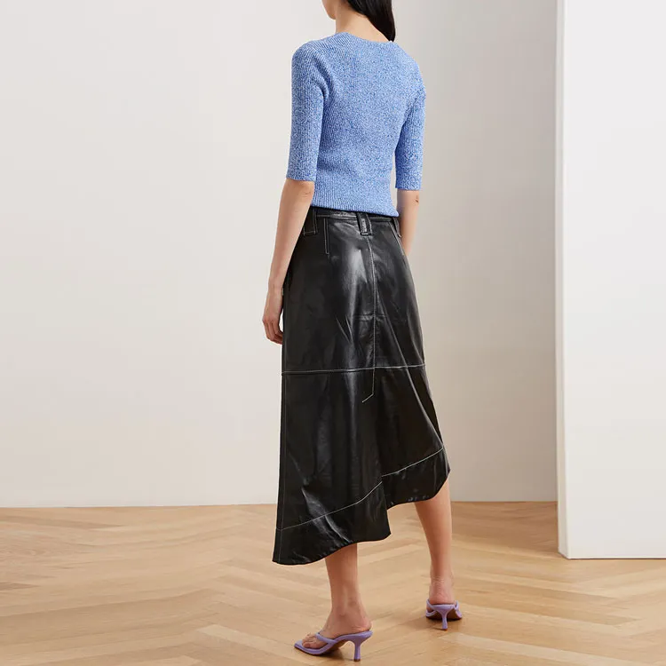 GANNI Черные Женские Кожаные Длинные Юбки