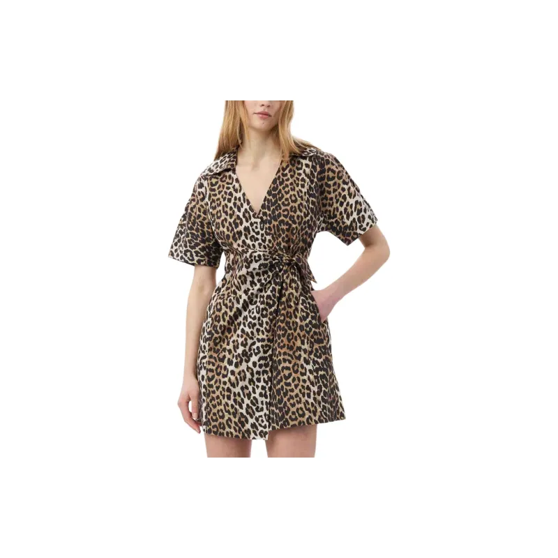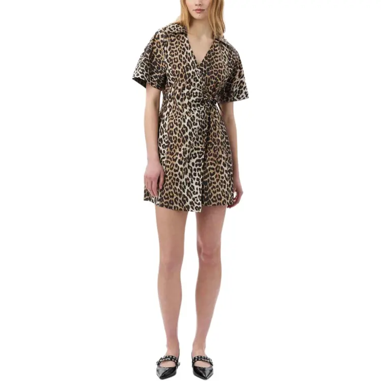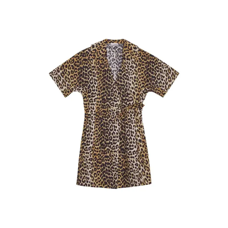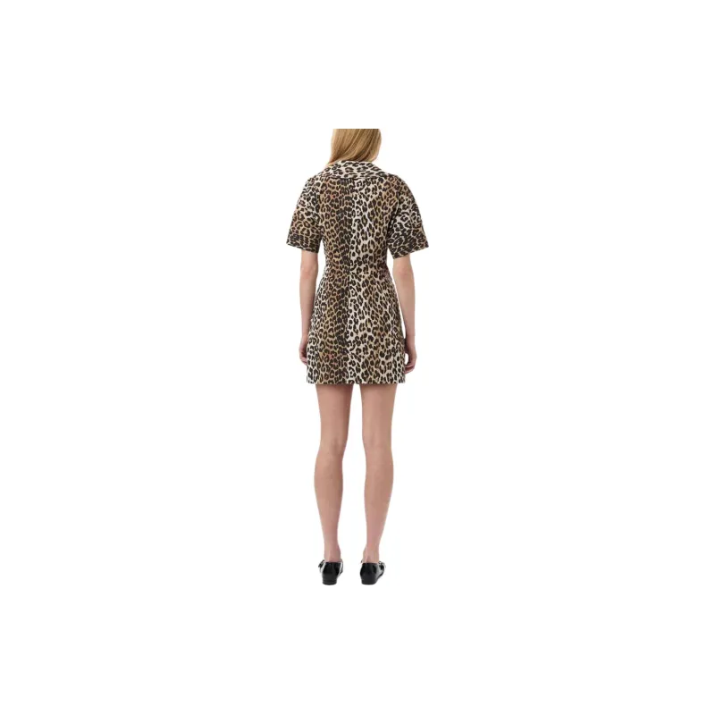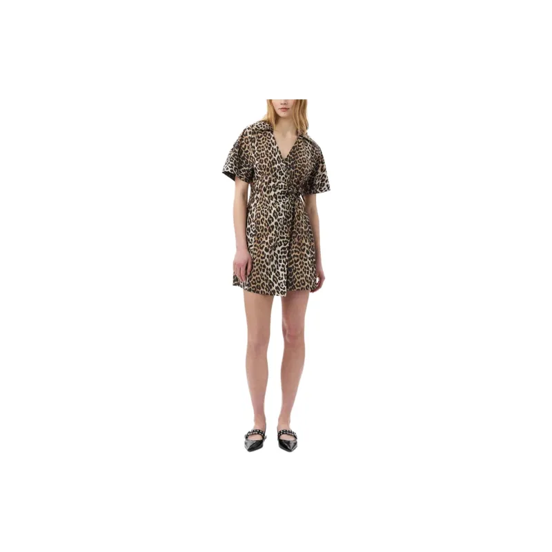GANNI Короткое платье с короткими рукавами женское коричневое