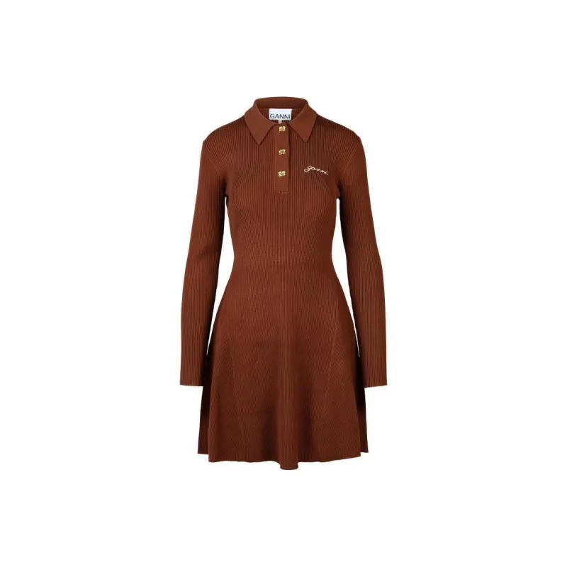 GANNI Длинное платье с длинными рукавами женское коричневое