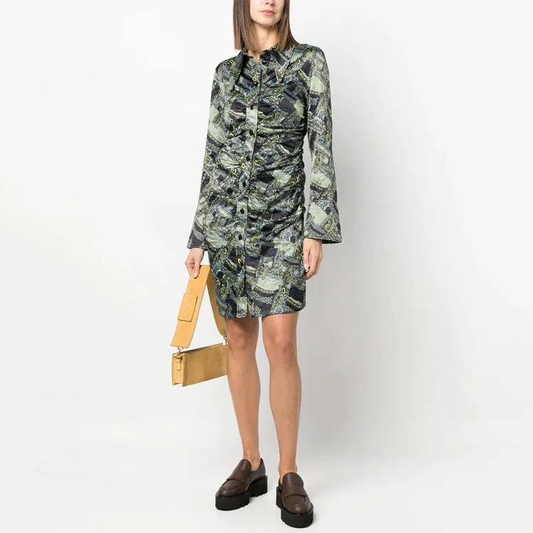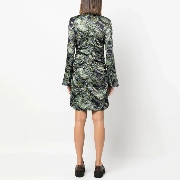 GANNI Зеленое Женское Длинное Платье с Рукавами
