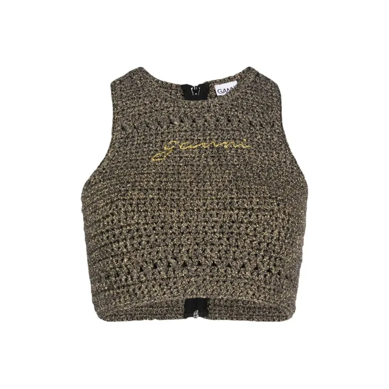 GANNI Оливково-зеленые Женские Майки