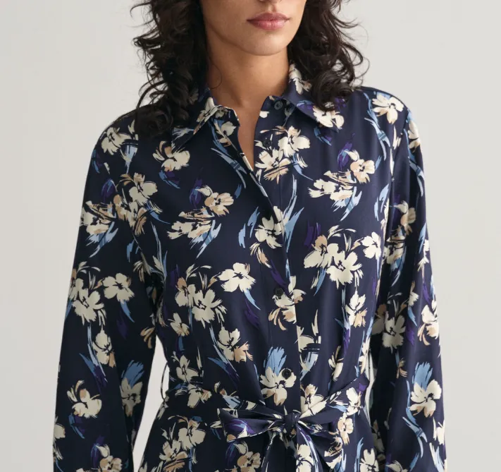 GANT Длинное платье с длинными рукавами женское цвет полночный синий