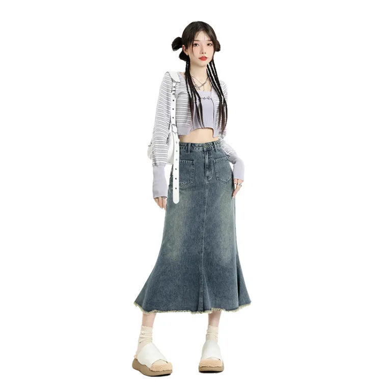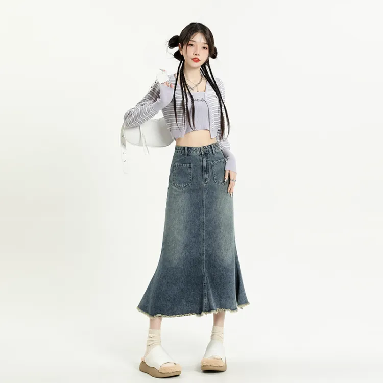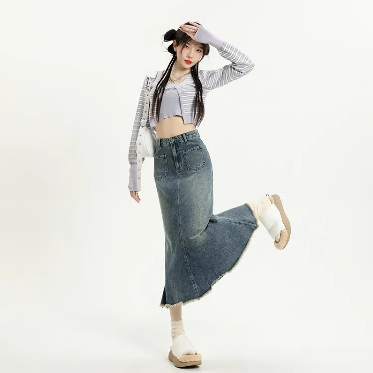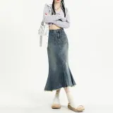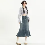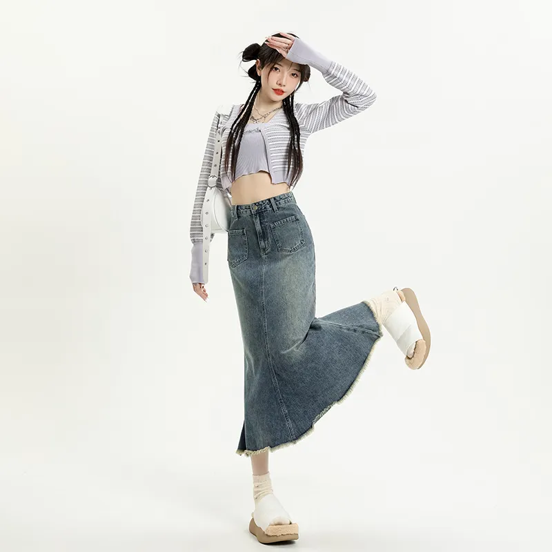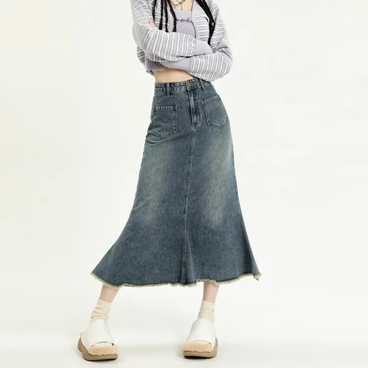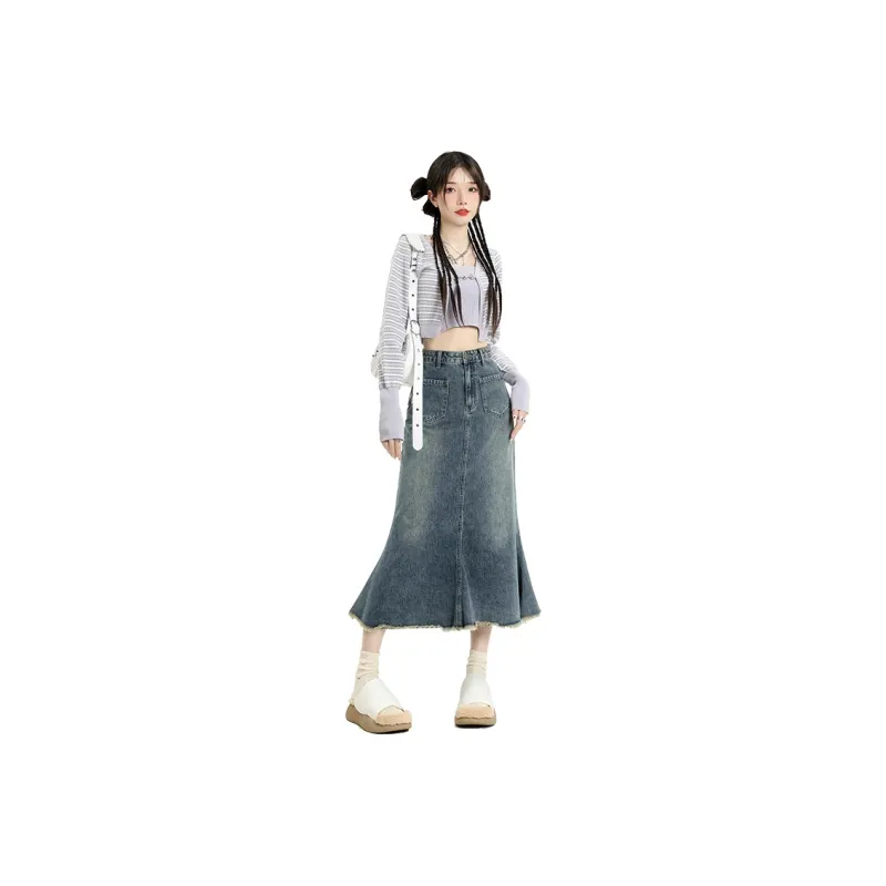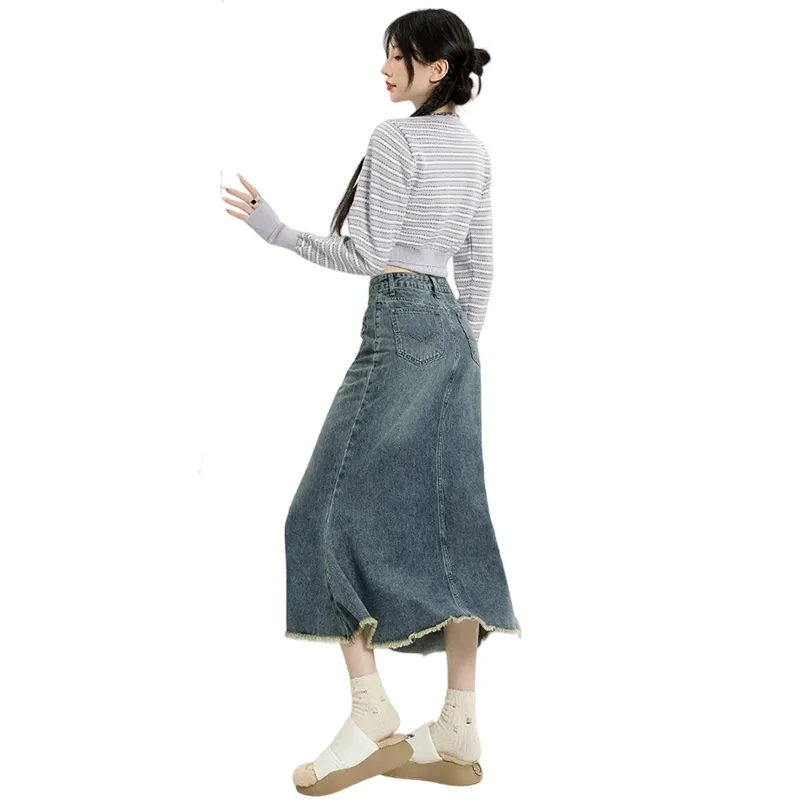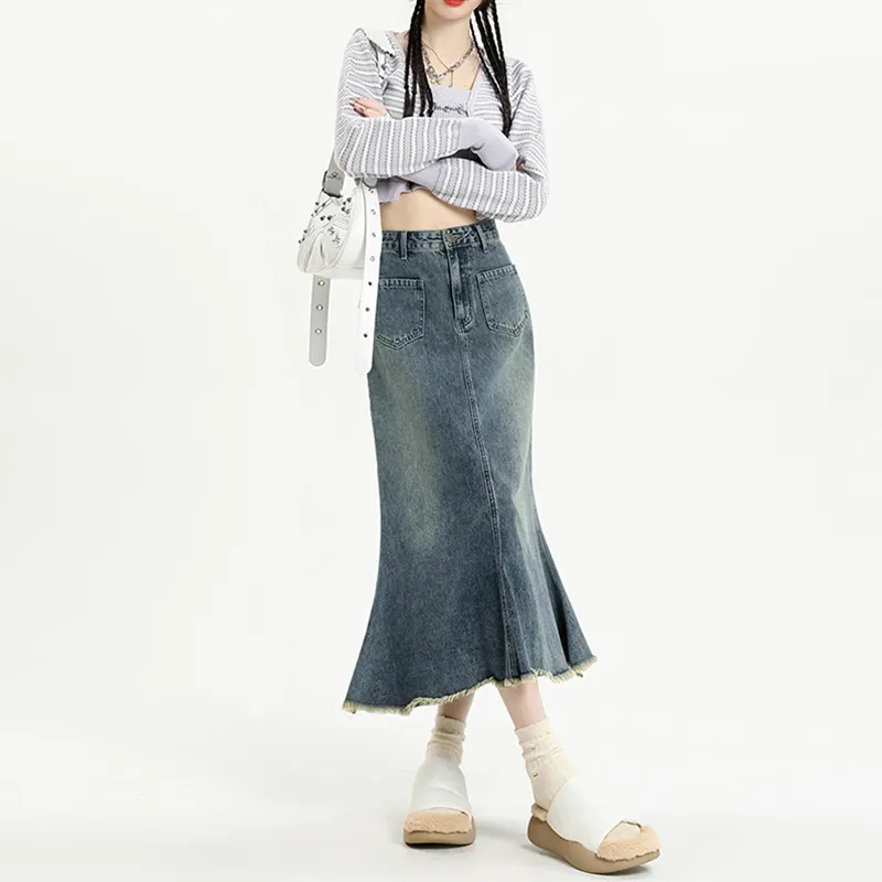 Garbege Винтажный синий длинный юбка женские джинсовые длинные юбки