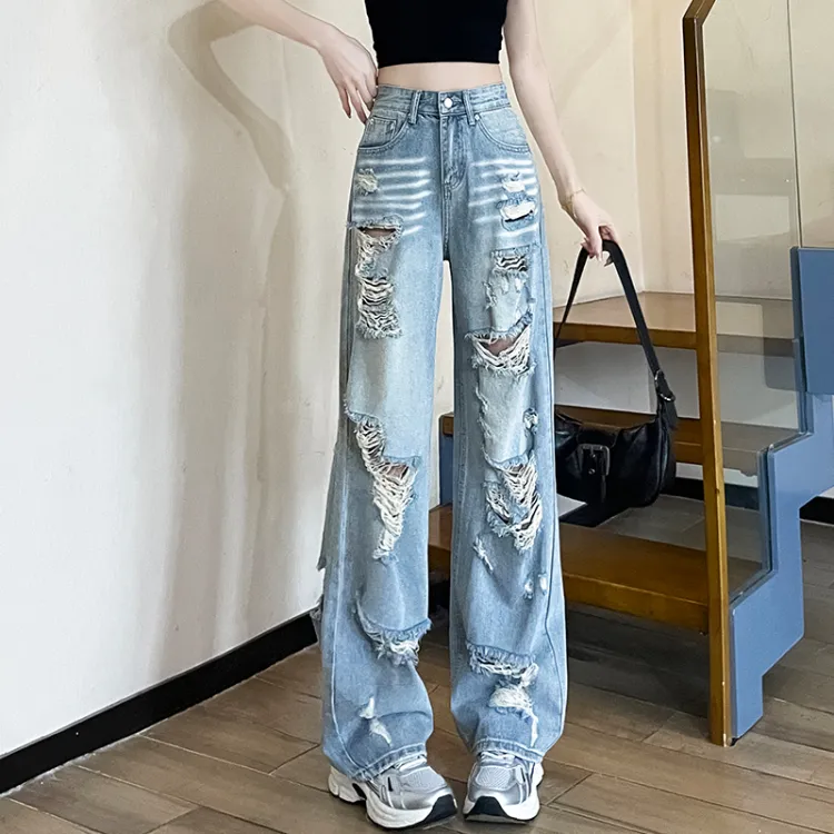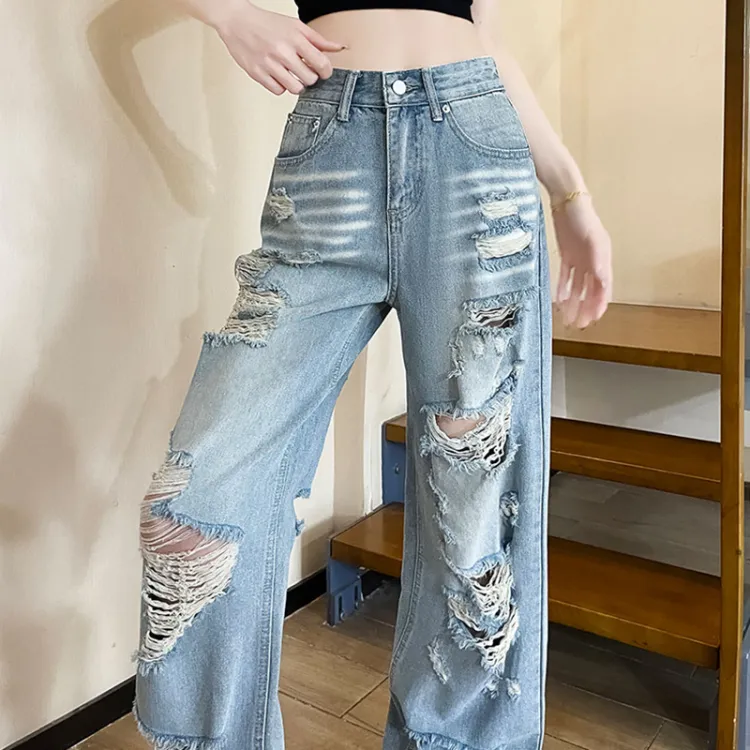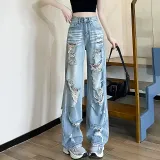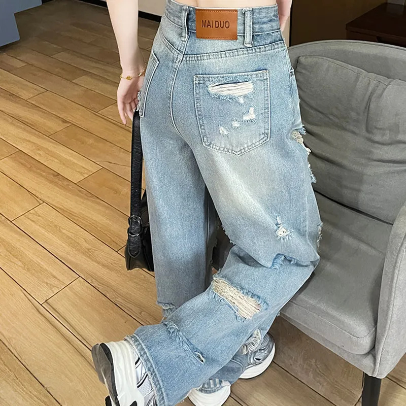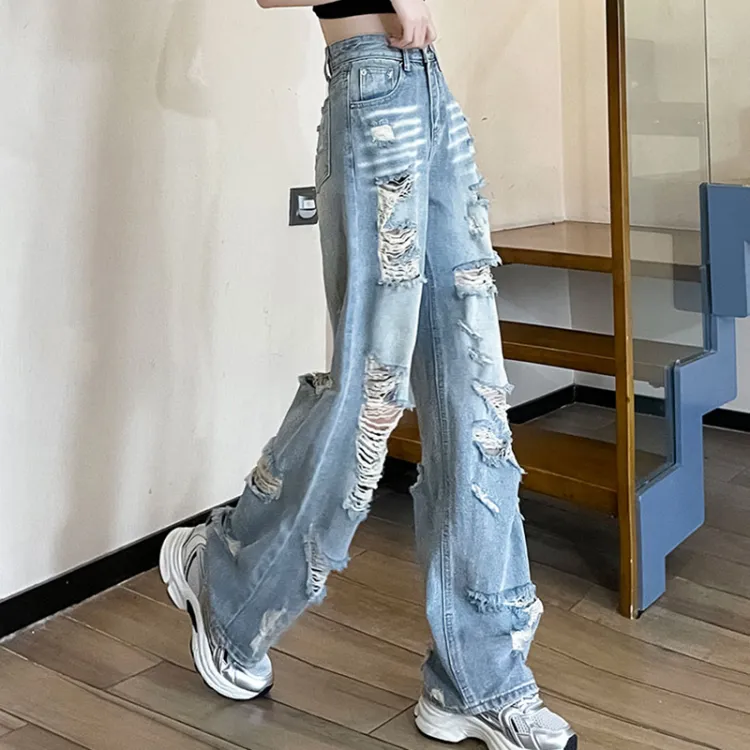 Garbege Светло-синие Брюки Женские Джинсы