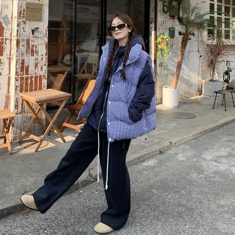 Garbege Синий Жилет Женские Пуховики