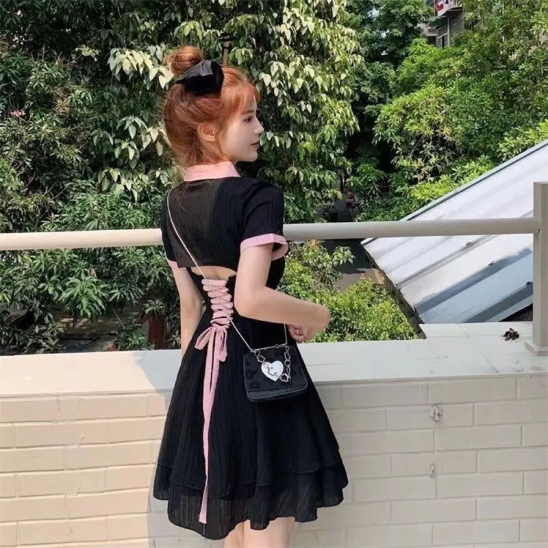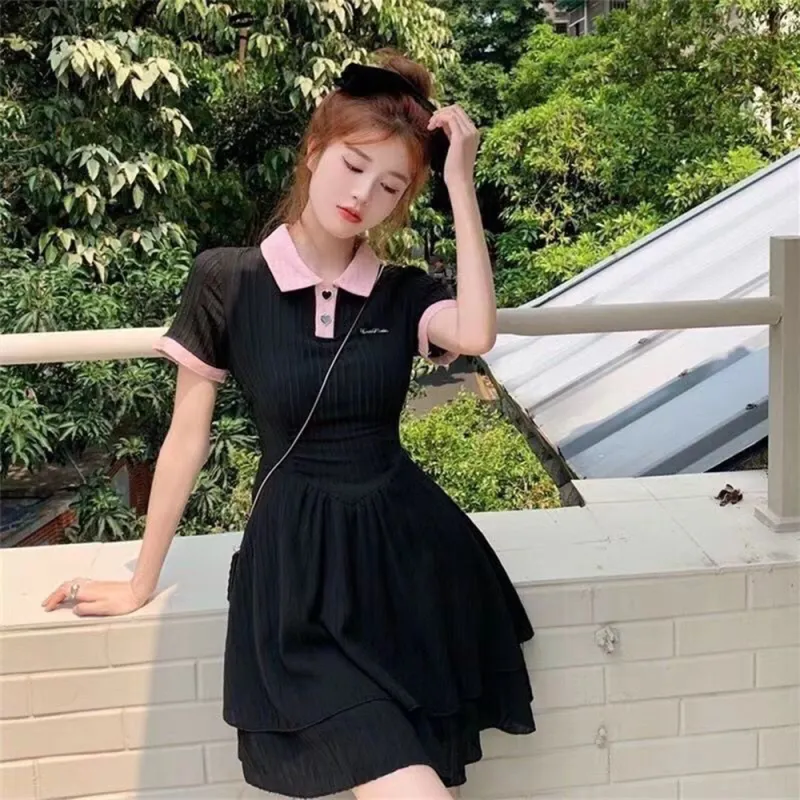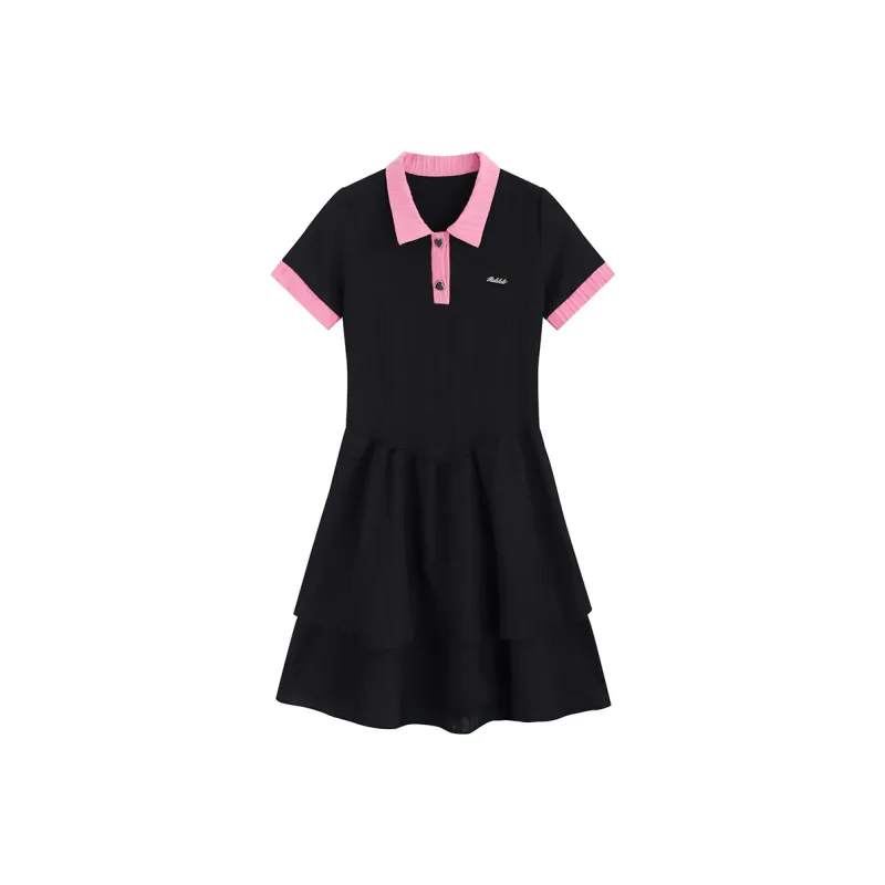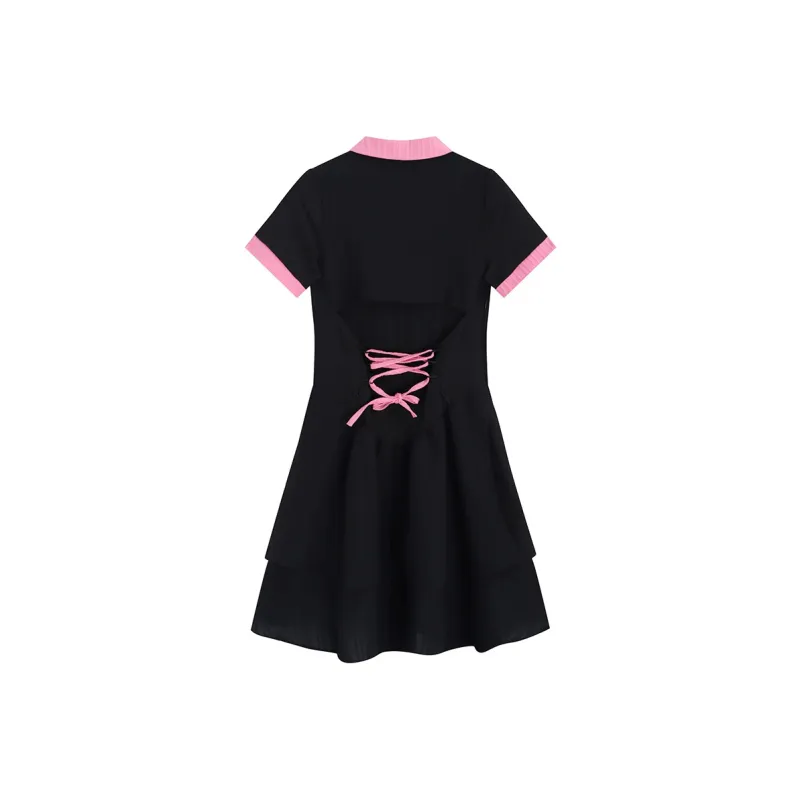 Garbege Короткий рукав платье женское черное и розовое