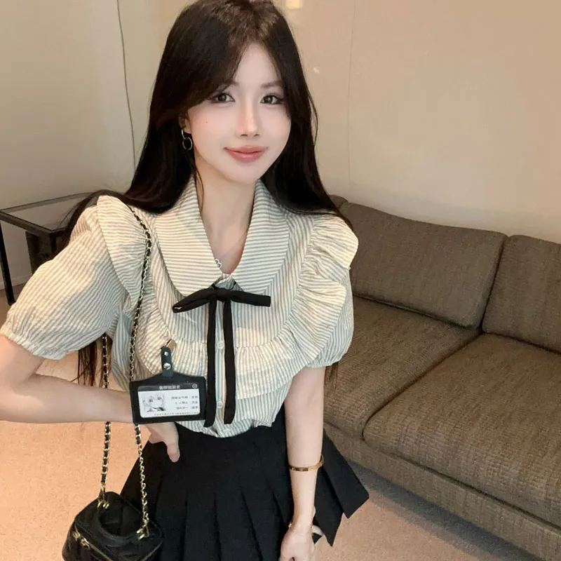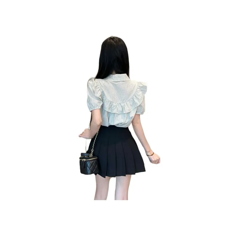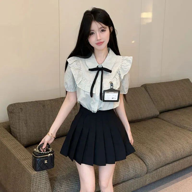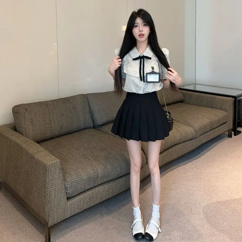 Garbege Полосатая рубашка, черная юбка, одежда, комплекты с юбкой для женщин