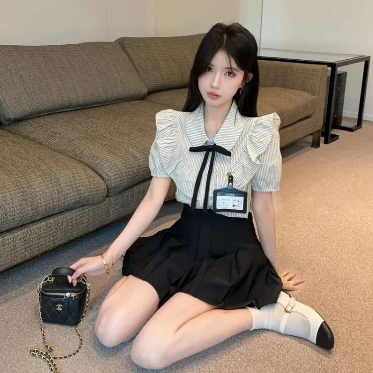 Цвет:Полосы, рубашка, черный, юбка, одежда, наборы