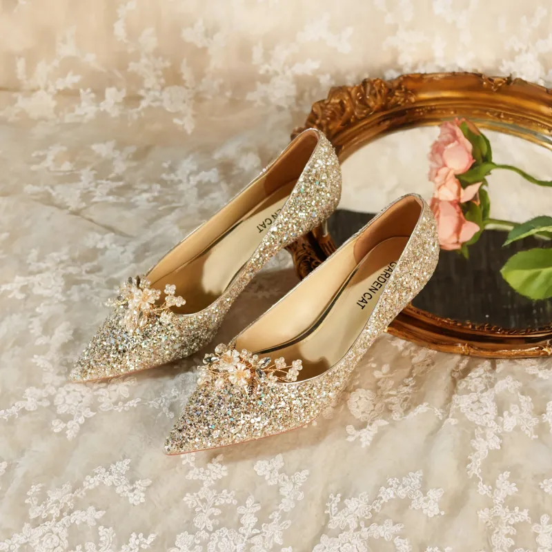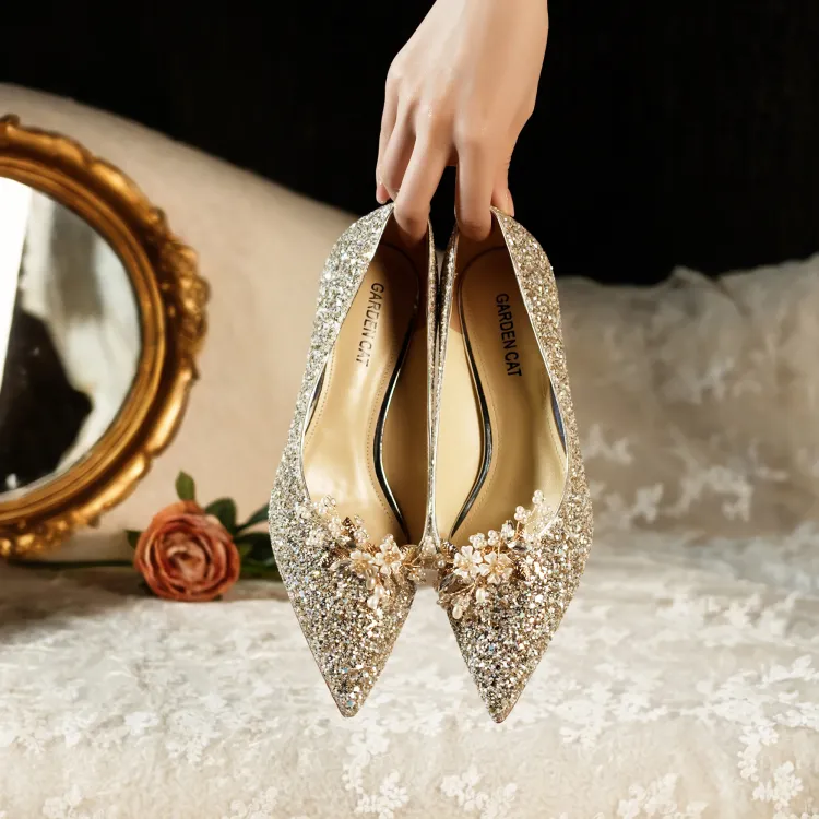 GARDEN CAT Dreaming Galaxy Узкий каблук Высокие каблуки 4,5 см Женские Ночной свет Светлое золото