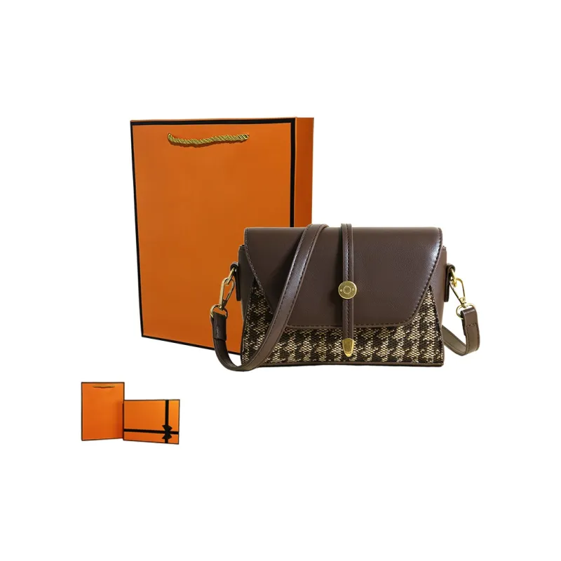 GATOER Маленькая квадратная сумка женская премиум-класса Feel с узором "гусиная лапка" сумка на плечо обычный коричневый