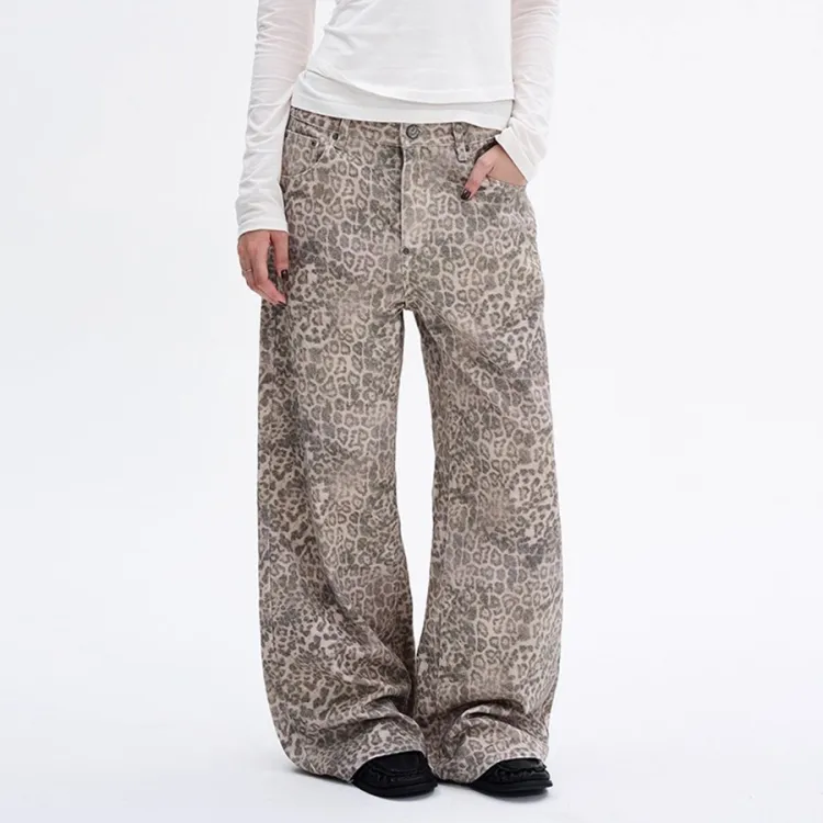 GBXM Леопардовый принт Унисекс Джинсы