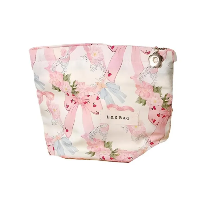 Geanno Розовый Бант Хлопковая Ткань Большая Емкость Уход за Кожей Сумка для Хранения Портативная Сумка для Туалетных Принадлежностей Косметичка