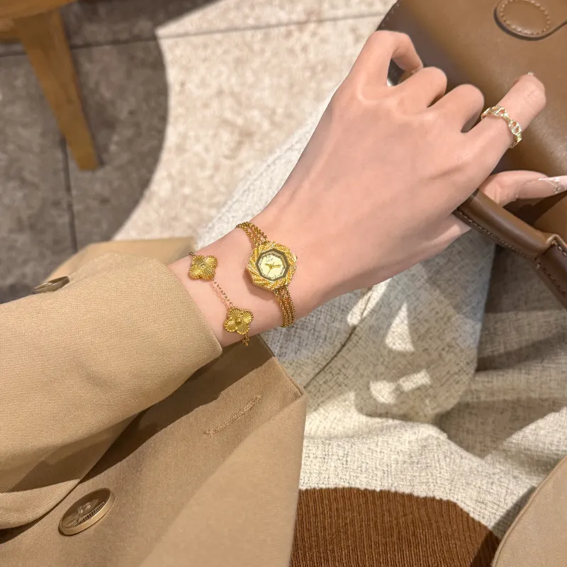 GEDI Кварцевый механизм сплав ремешок женские часы золотой циферблат