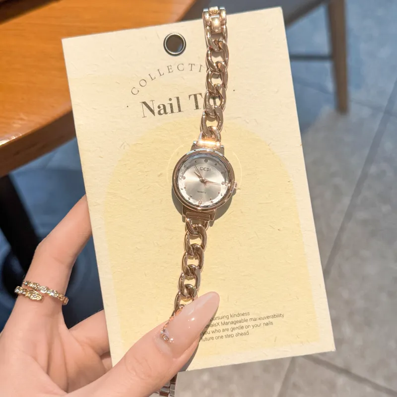GEDI Кварцевый механизм сплав ремешок женские часы золотой циферблат