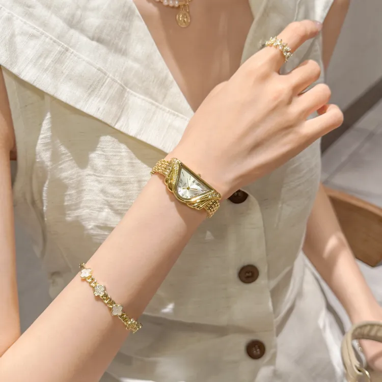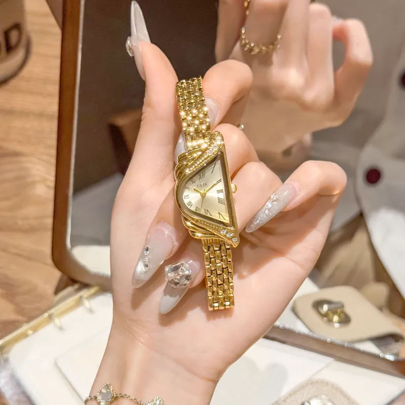 GEDI Кварцевый механизм сплав ремешок женские часы золотой циферблат