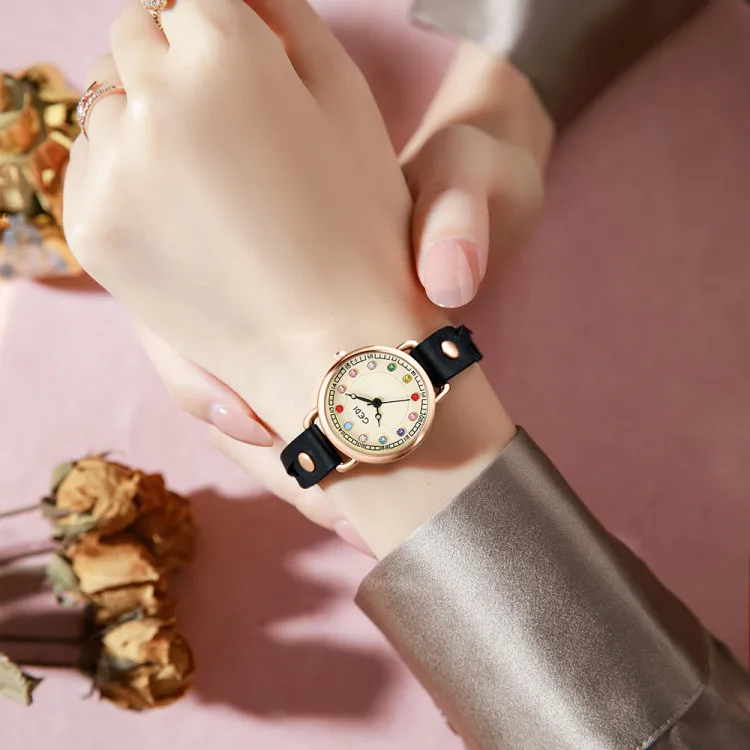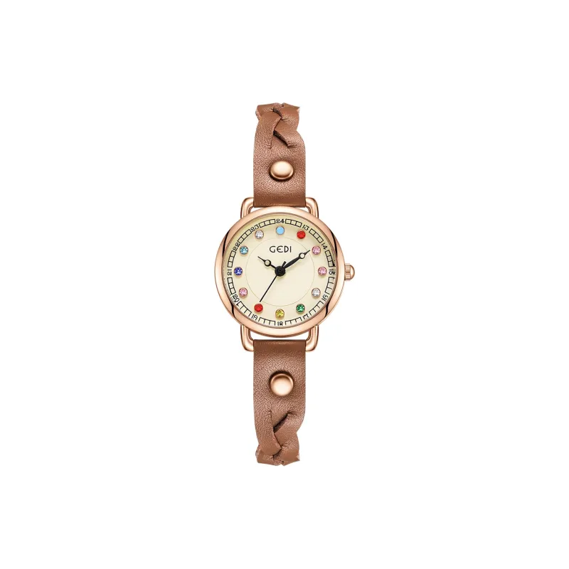 GEDI Кварцевый механизм натуральная кожа ремешок женские часы белый циферблат