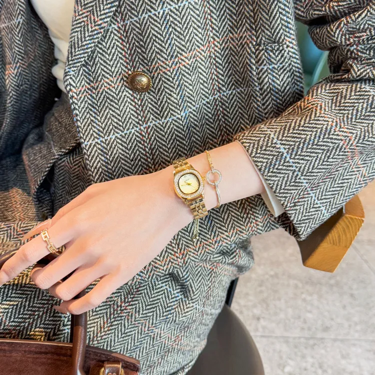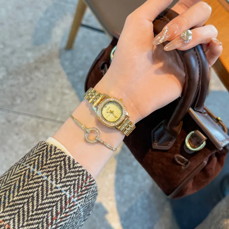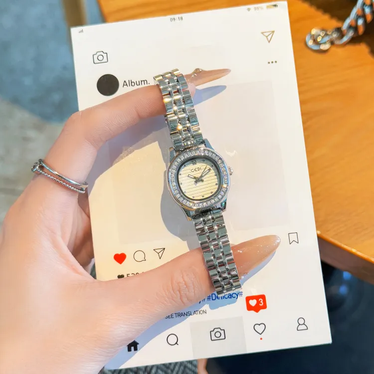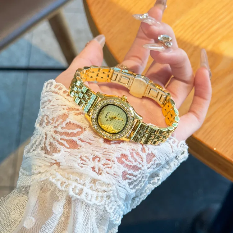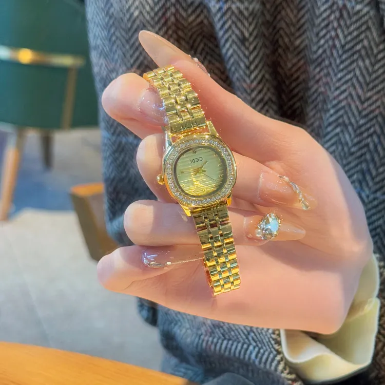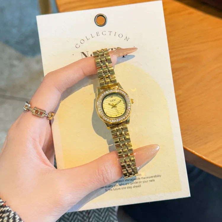 GEDI Кварцевый механизм стальной ремешок женские часы золотой циферблат