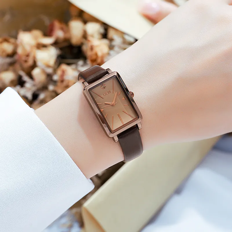 GEDI Кварцевый механизм Steel Strap Женские часы Циферблат с кофейным оттенком