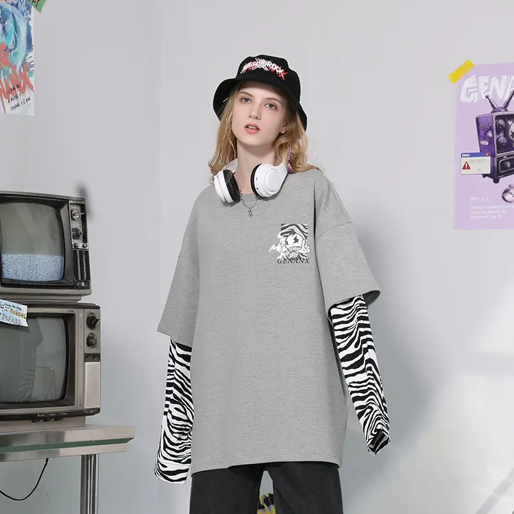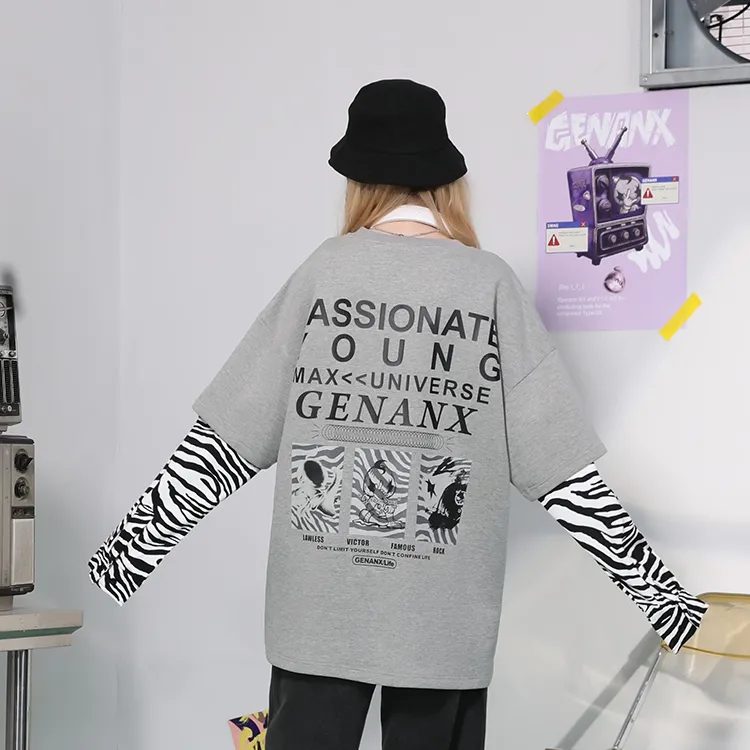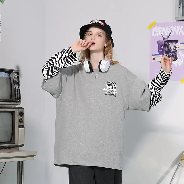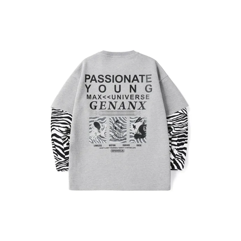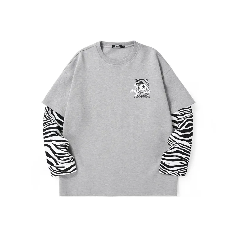 GENANX Круглый вырез Свободный крой Mock Двухкомпонентный свитшот Унисекс Серый