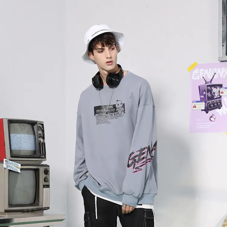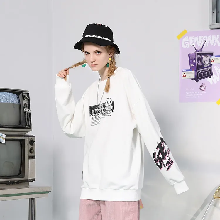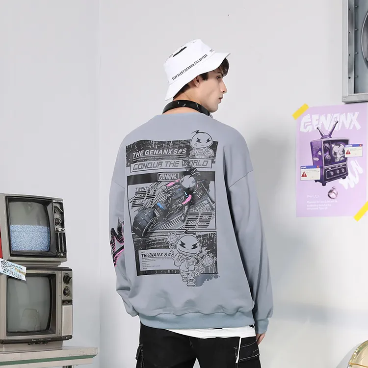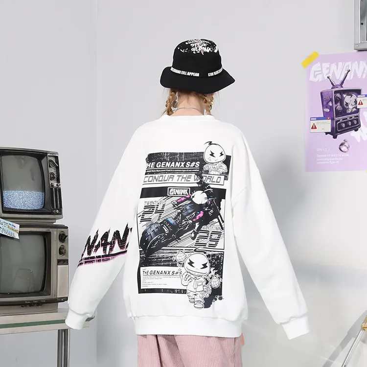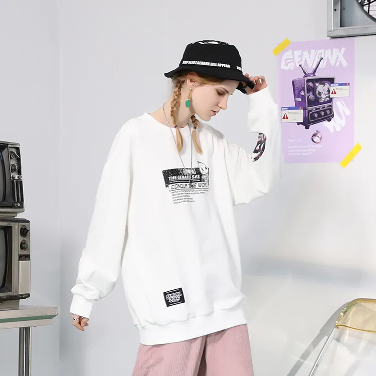 GENANX Круглый вырез Свободный крой Толстовка Унисекс