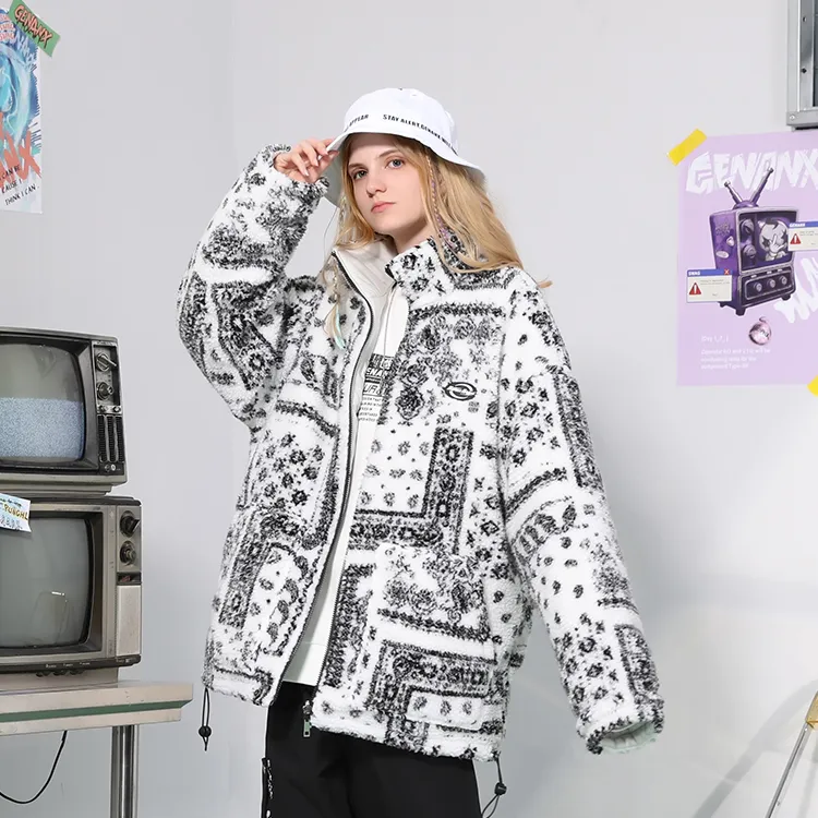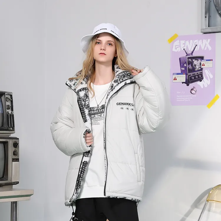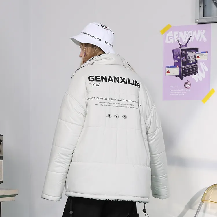 GENANX Цветочный воротник-стойка свободный крой пуховая куртка унисекс