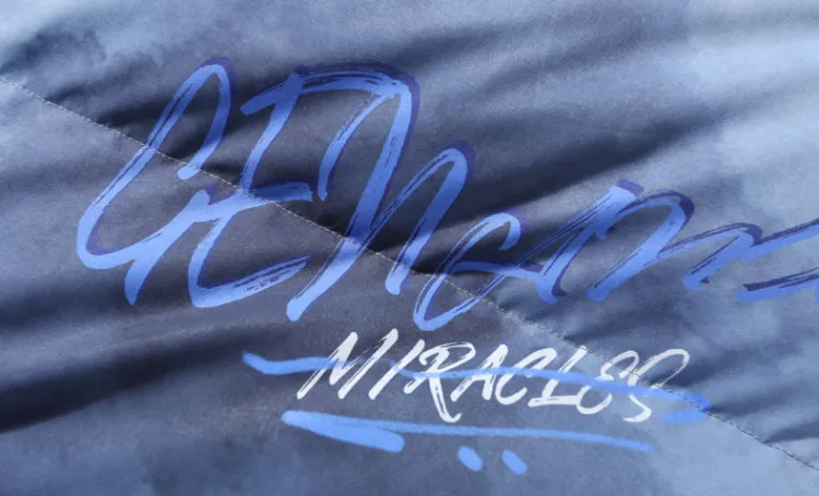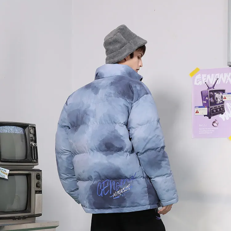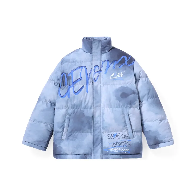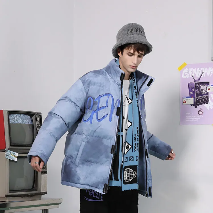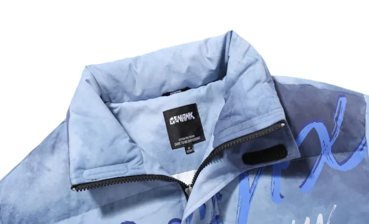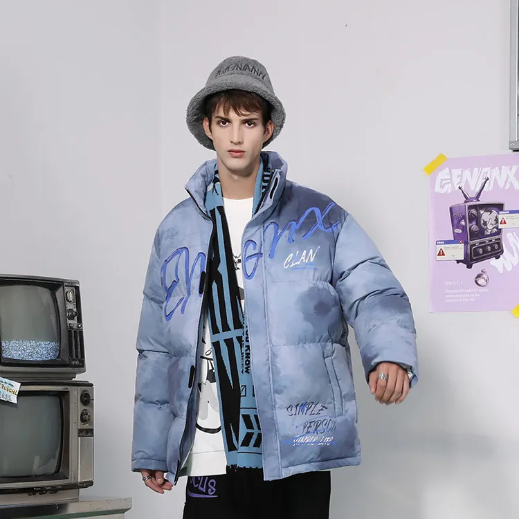 GENANX Буква Воротник-стойка Свободный крой Пуховая куртка Унисекс Серый Синий