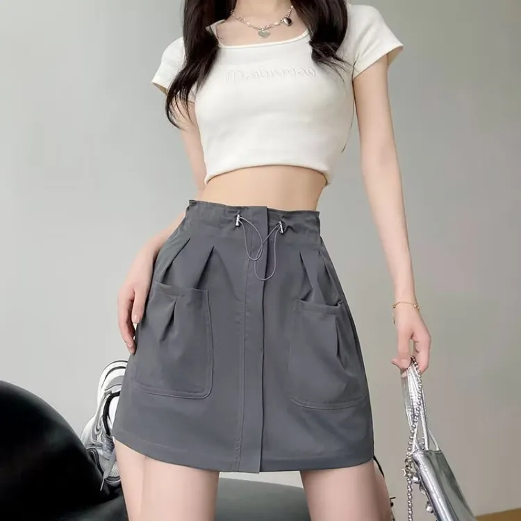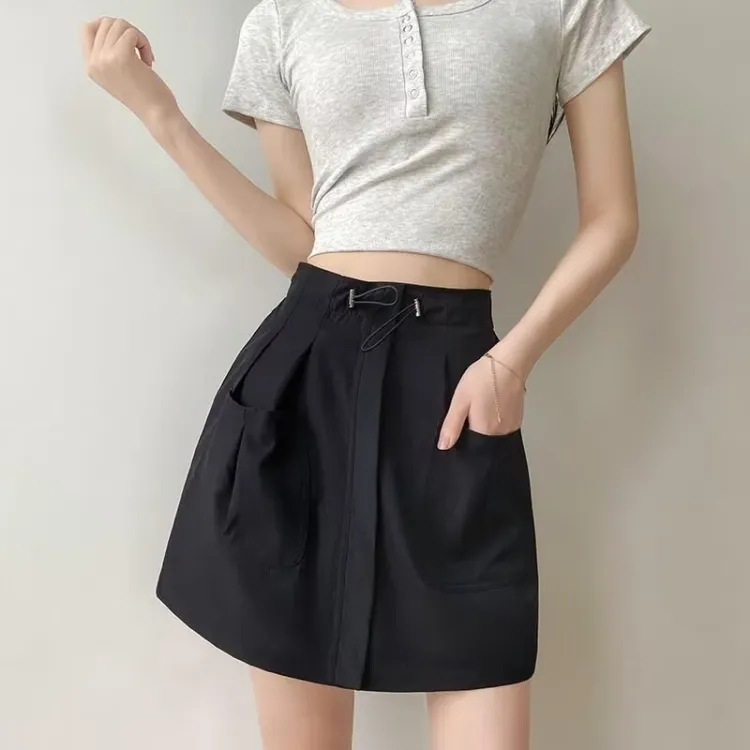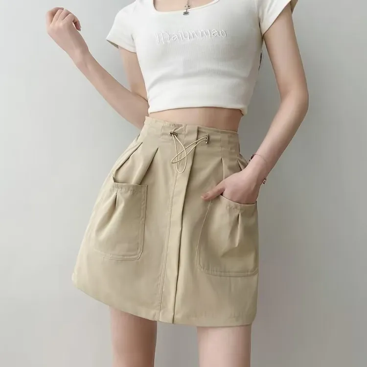 Genius Pooh Американская карго-юбка Летняя Женская Модная HIGH RISE Anti-вспышка Премиум Линия Юбка Женская