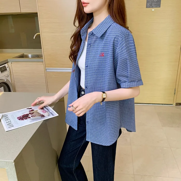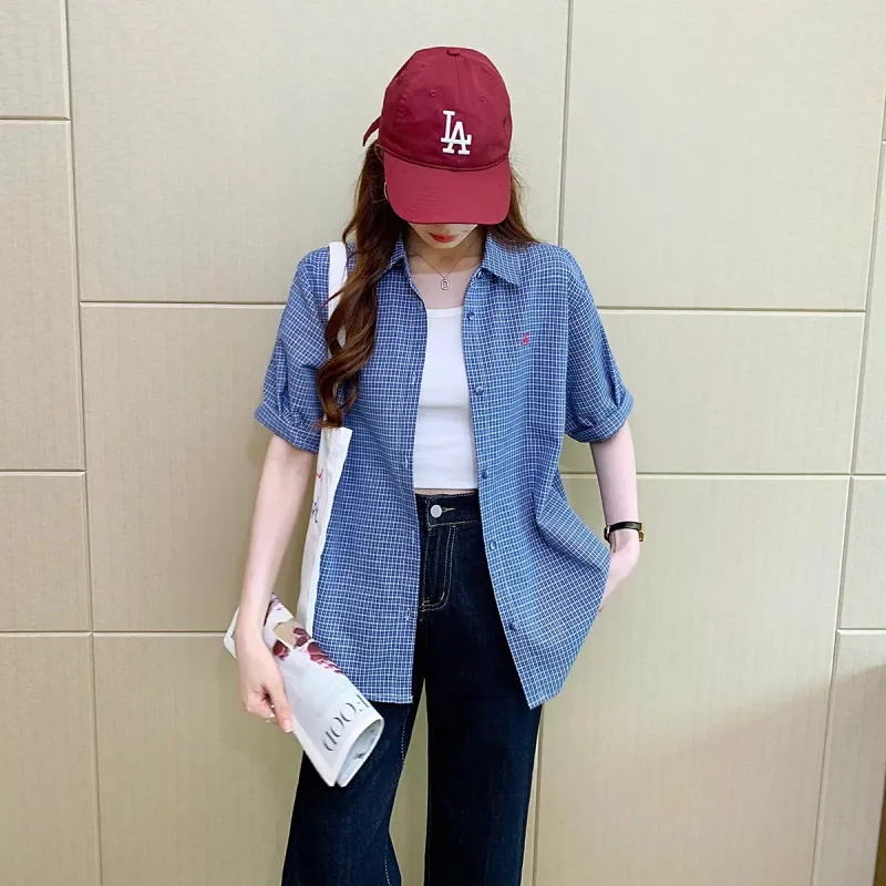 Genius Pooh Женская Гонконгская Элегантная Винтажная Клетчатая Короткая Рубашка с Длинными Рукавами Женская