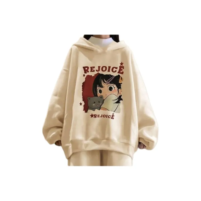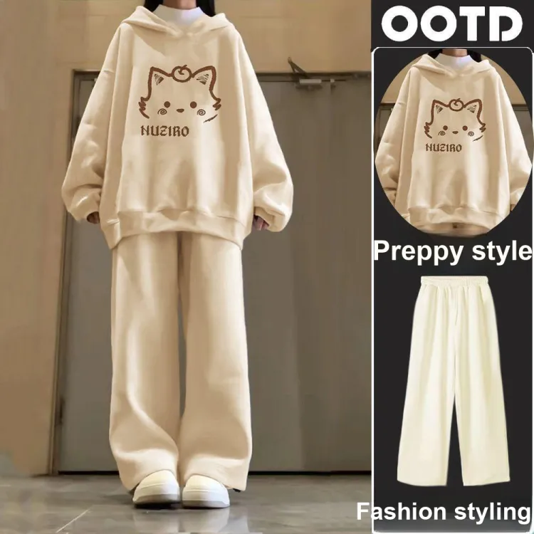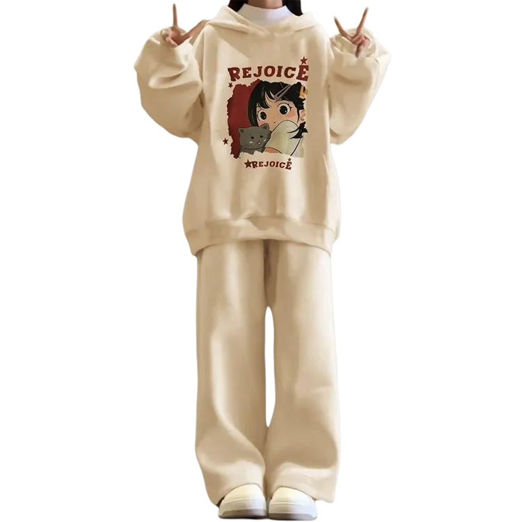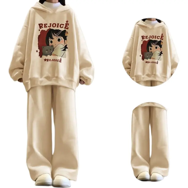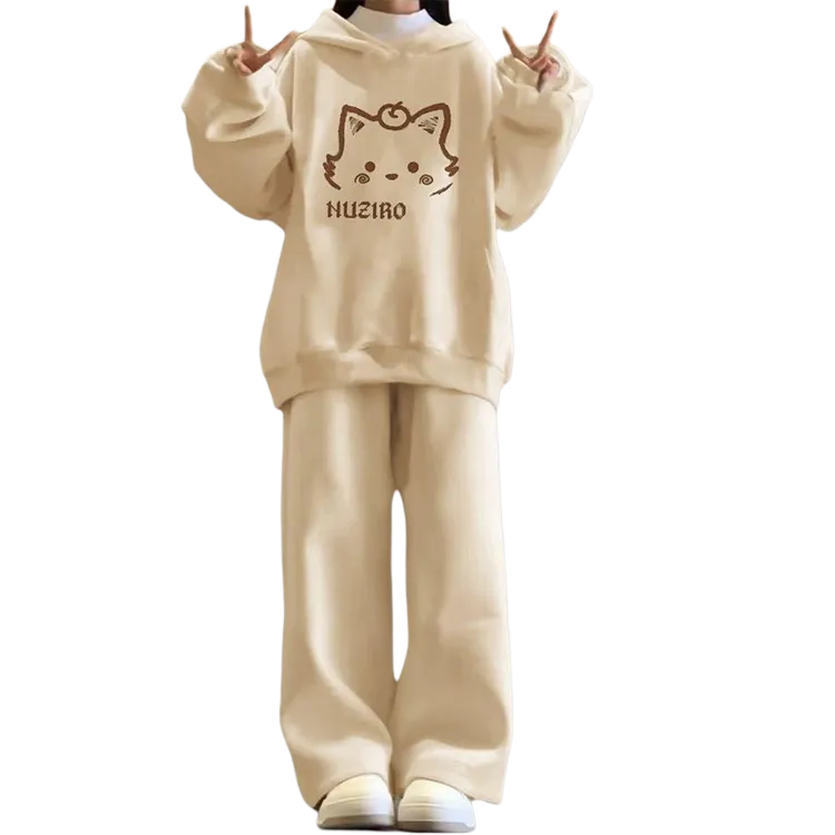 Комплект:Девушка Абрикос с капюшоном + Абрикосовые широкие штаны [Без подкладки, комплект одежды]