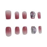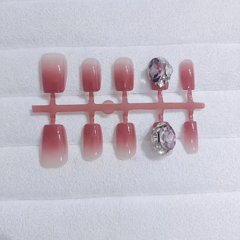 Gentle Welcome Градиентный Большой Ромб S055 Розовый Лес False Nail Короткий LADDER Розовый Стиль Смузи Instagram